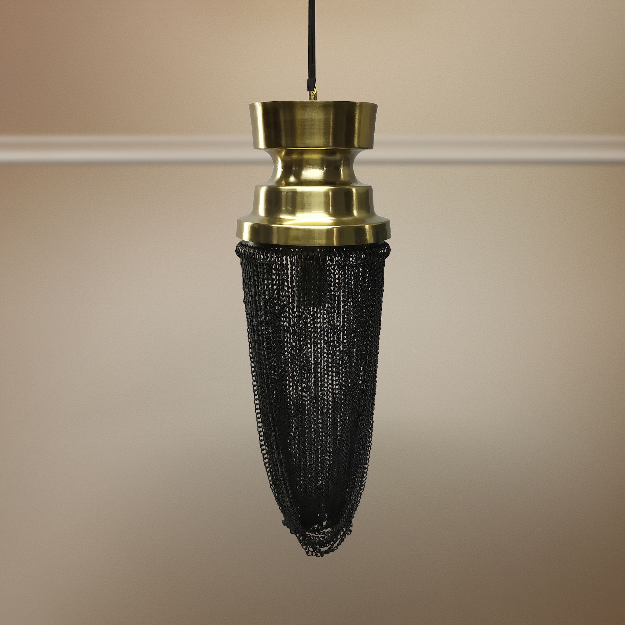 Inda 8"W Antique Brass and Black Metal Mini Pendant Light