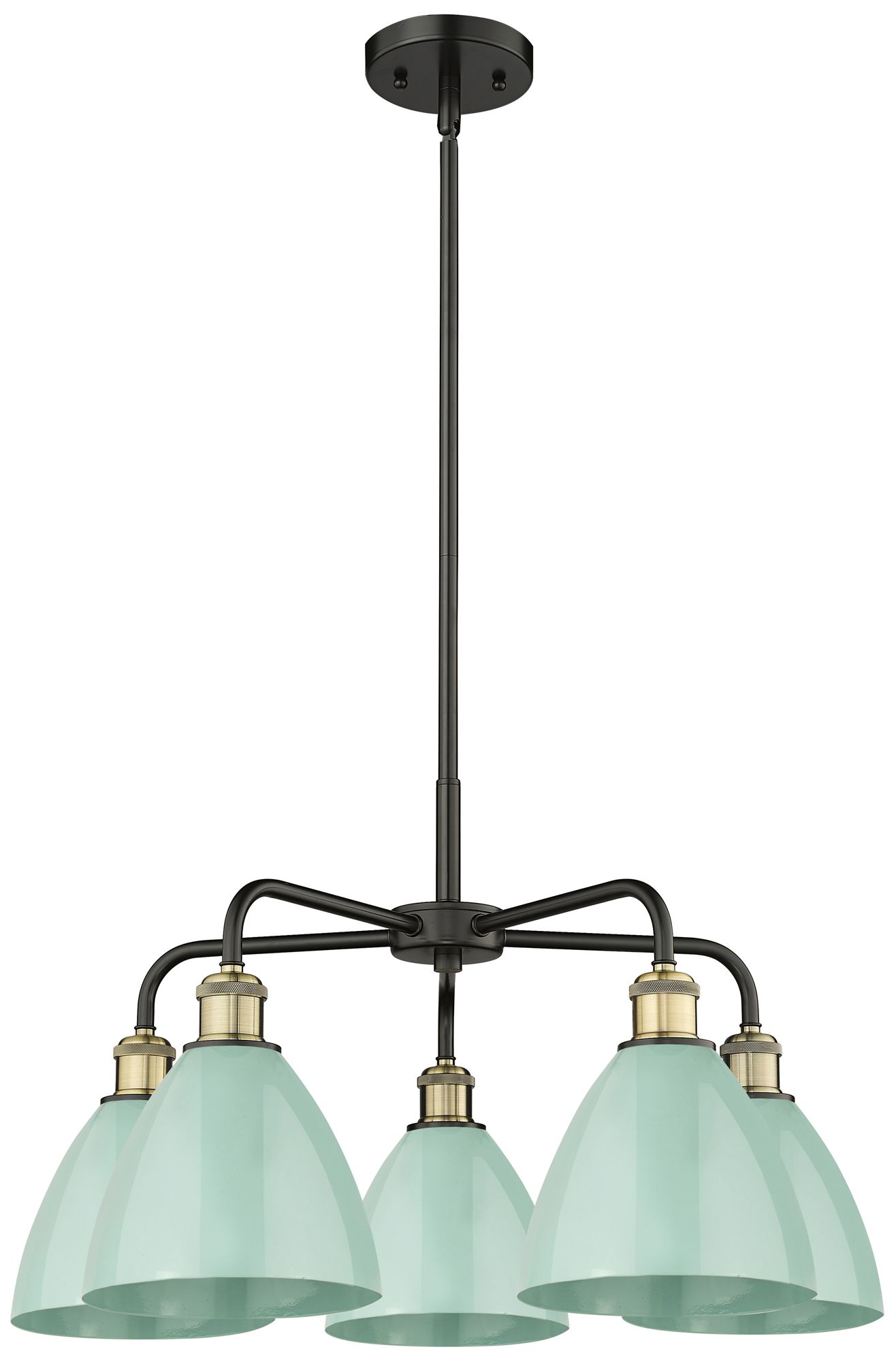 Ballston Dome 25.5"W 5 Light Black Brass Stem Chandelier w/ Seafoam Sh