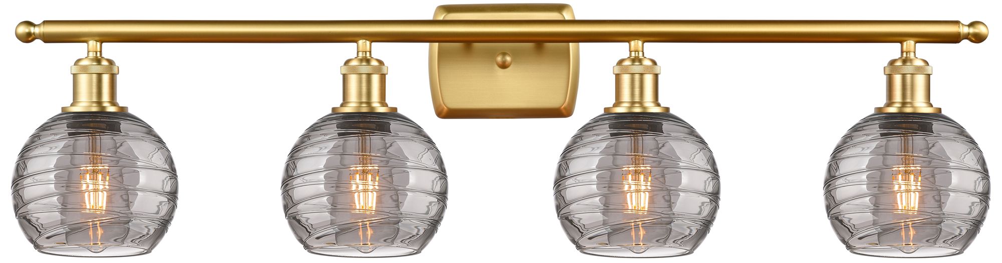 Ballston Athens 35.88"W 4-Light Gold Bath Vanity Light w/ Smoke Swirl