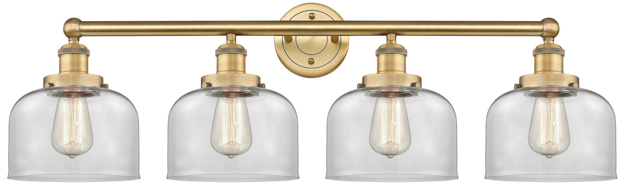 Large Bell 33.5"W 4 Light Brushed Brass Bath Vanity Light w/ Clear Sha