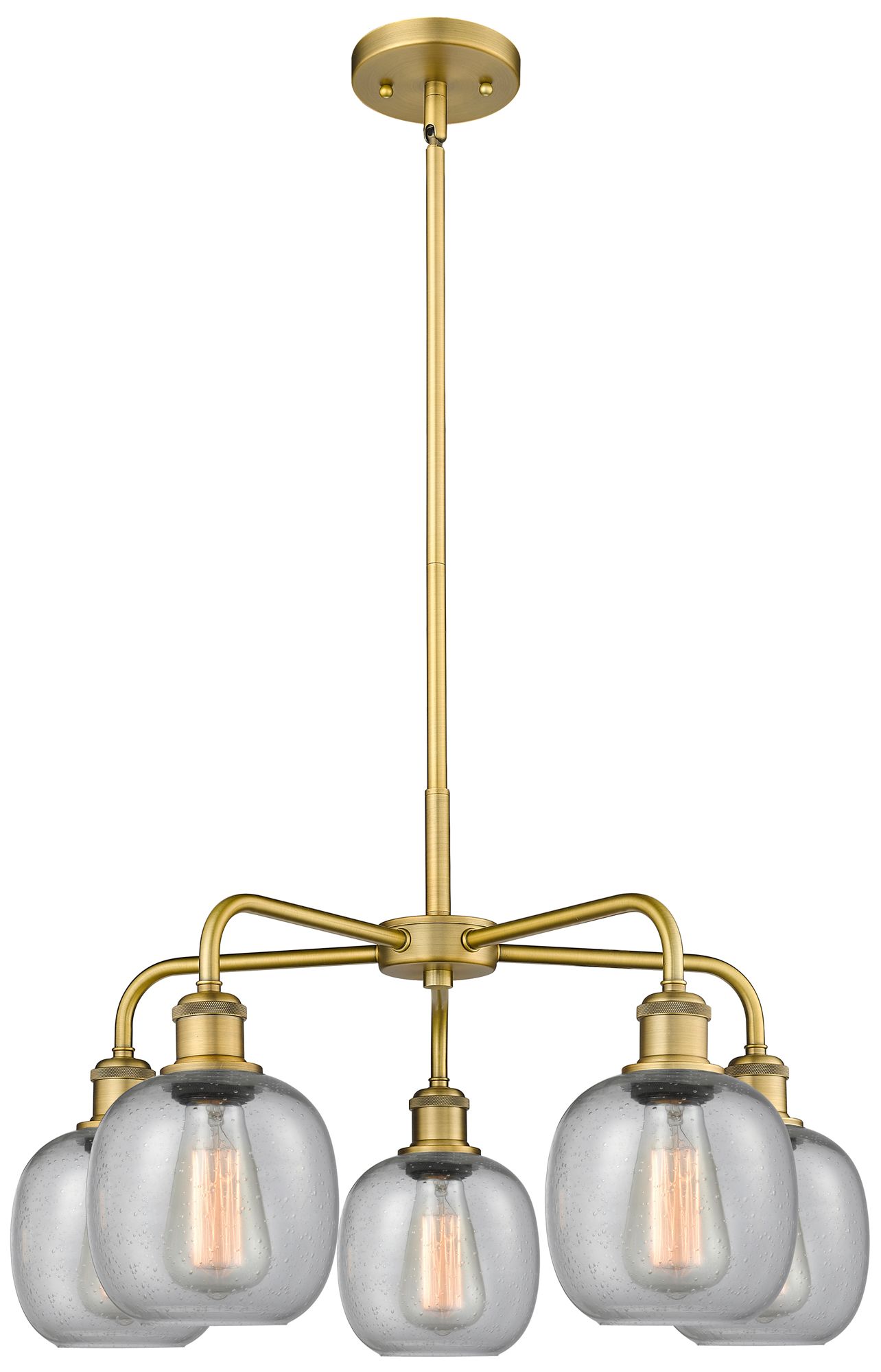 Belfast 24"W 5 Light Brushed Brass Stem Hung Chandelier With Seedy Sha