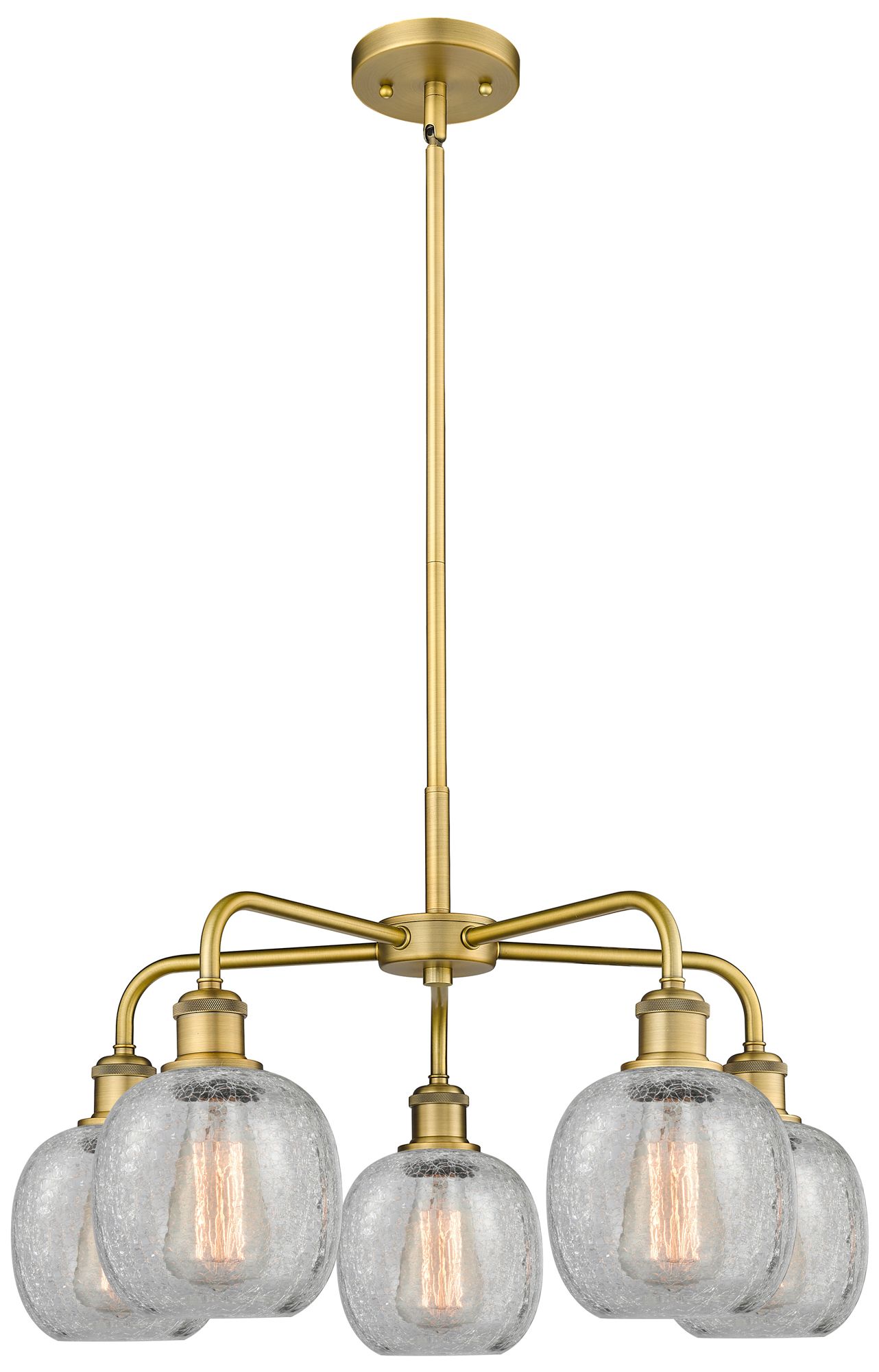 Belfast 24"W 5 Light Brushed Brass Stem Hung Chandelier With Crackle S