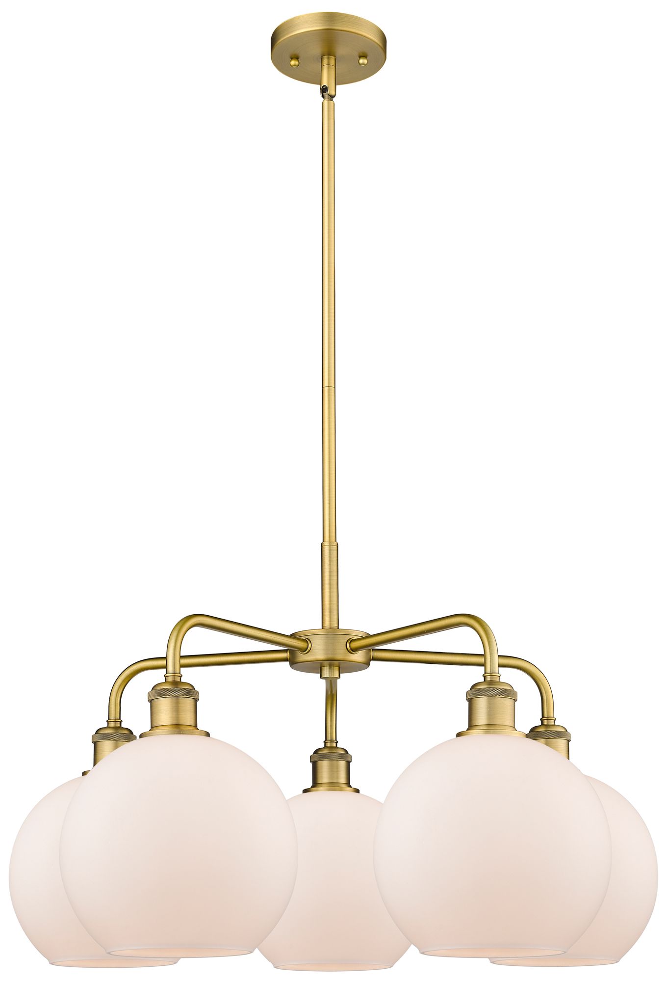 Athens 26"W 5 Light Brushed Brass Stem Hung Chandelier With White Shad