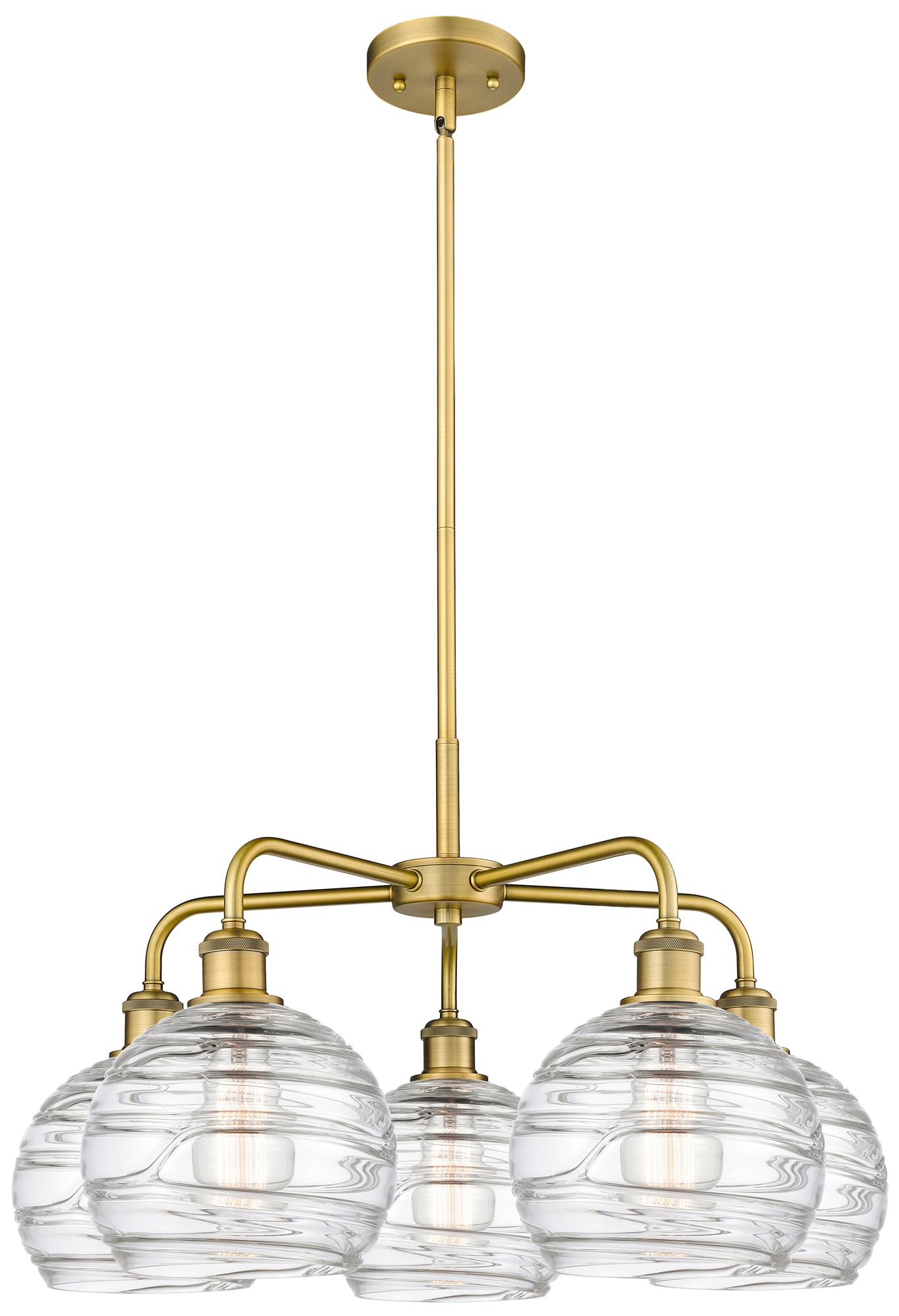 Athens 26"W 5 Light Brushed Brass Stem Hung Chandelier w/ Deco Swirl S