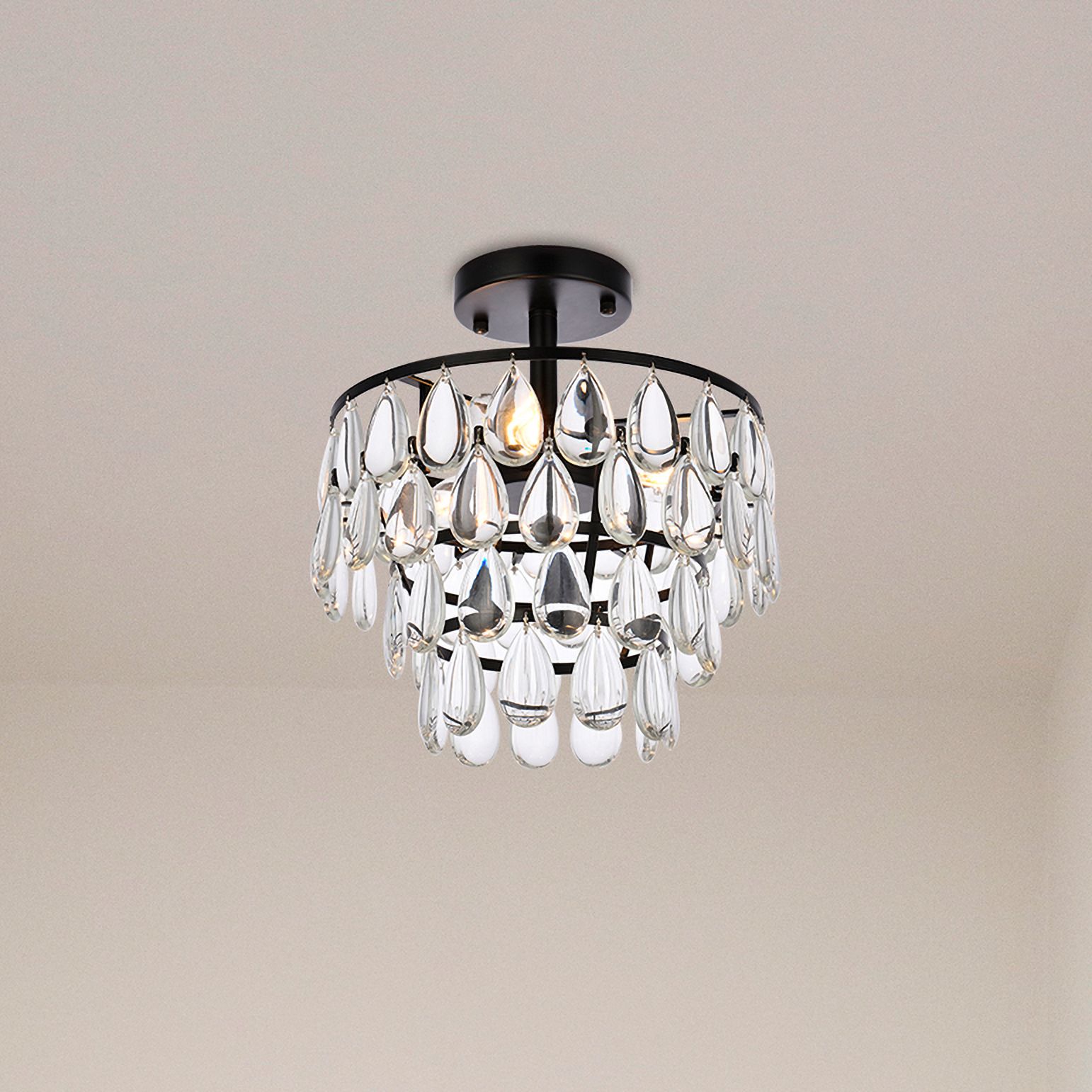 Elegant Lighting Mila 12" Black and Crystal Ceiling Light