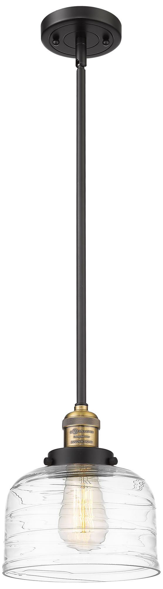 Franklin Bell 8"W Black Brass Stem Hung Mini Pendant w/ Deco Swirl Sha