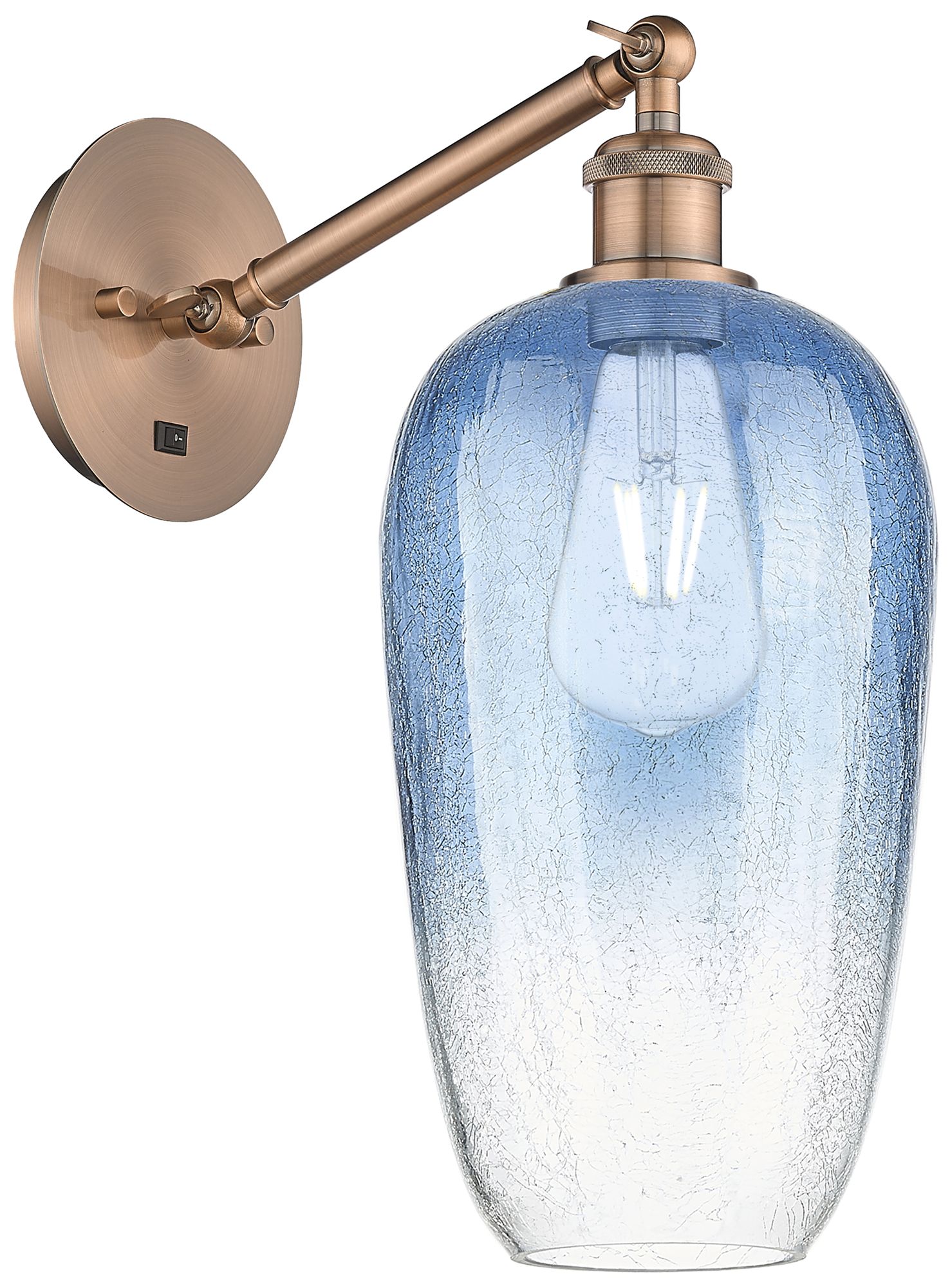 Ballston Brookhaven Flute 15"H Copper Swivel Sconce w/ Sapphire Shade