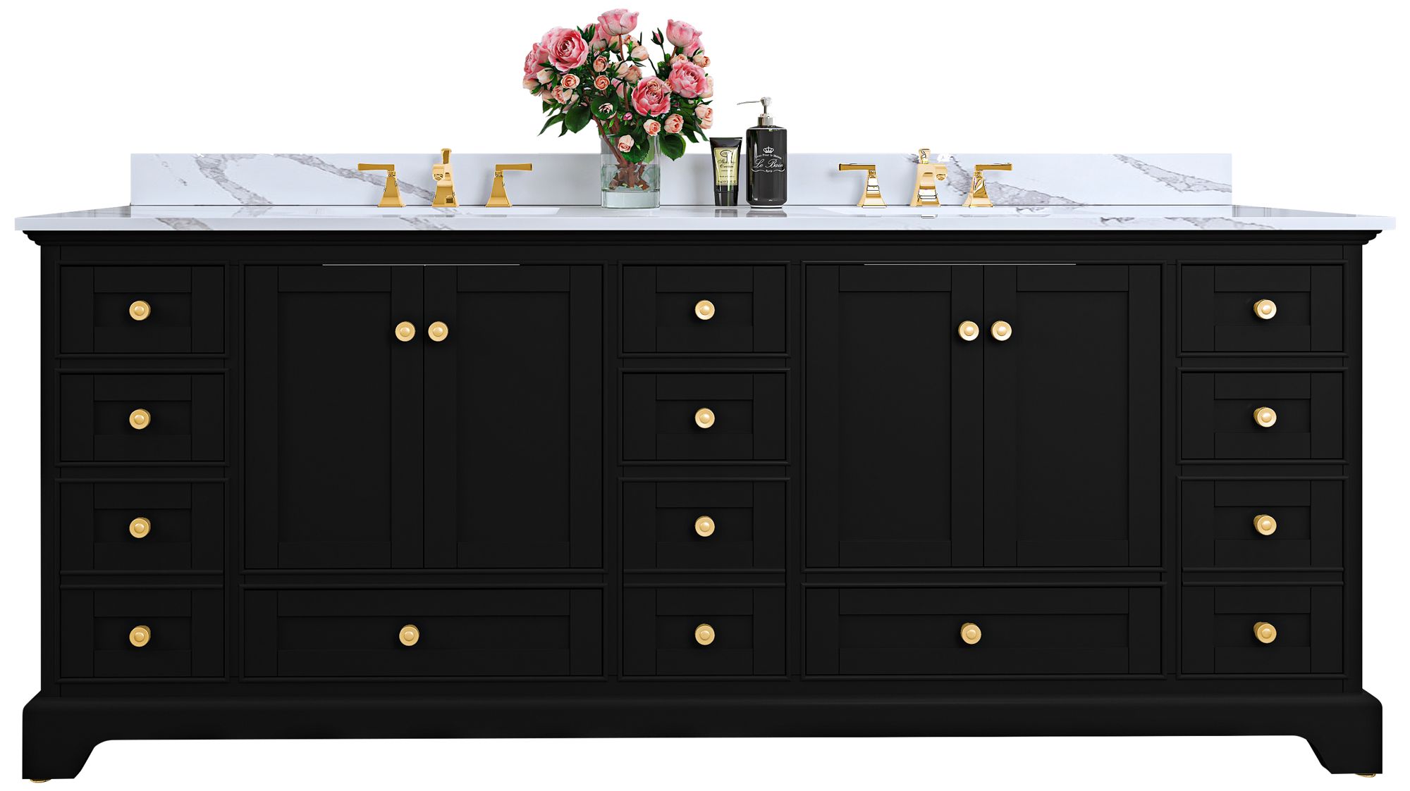 Audrey 84"W Double Sink Black Onyx Vanity Set with Quartz Stone Top