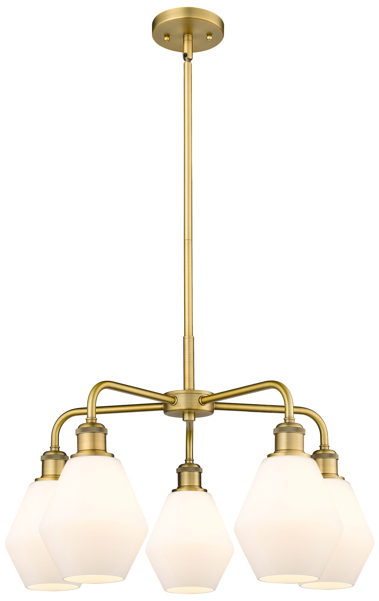 Cindyrella 24"W 5 Light Brushed Brass Stem Chandelier w/ Cased White S