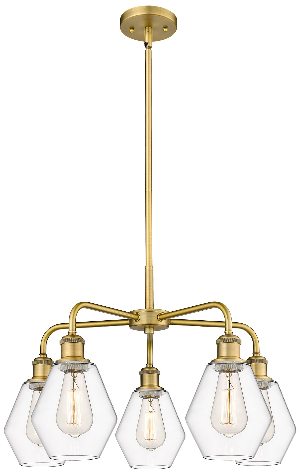 Cindyrella 24"W 5 Light Brushed Brass Stem Hung Chandelier With Clear