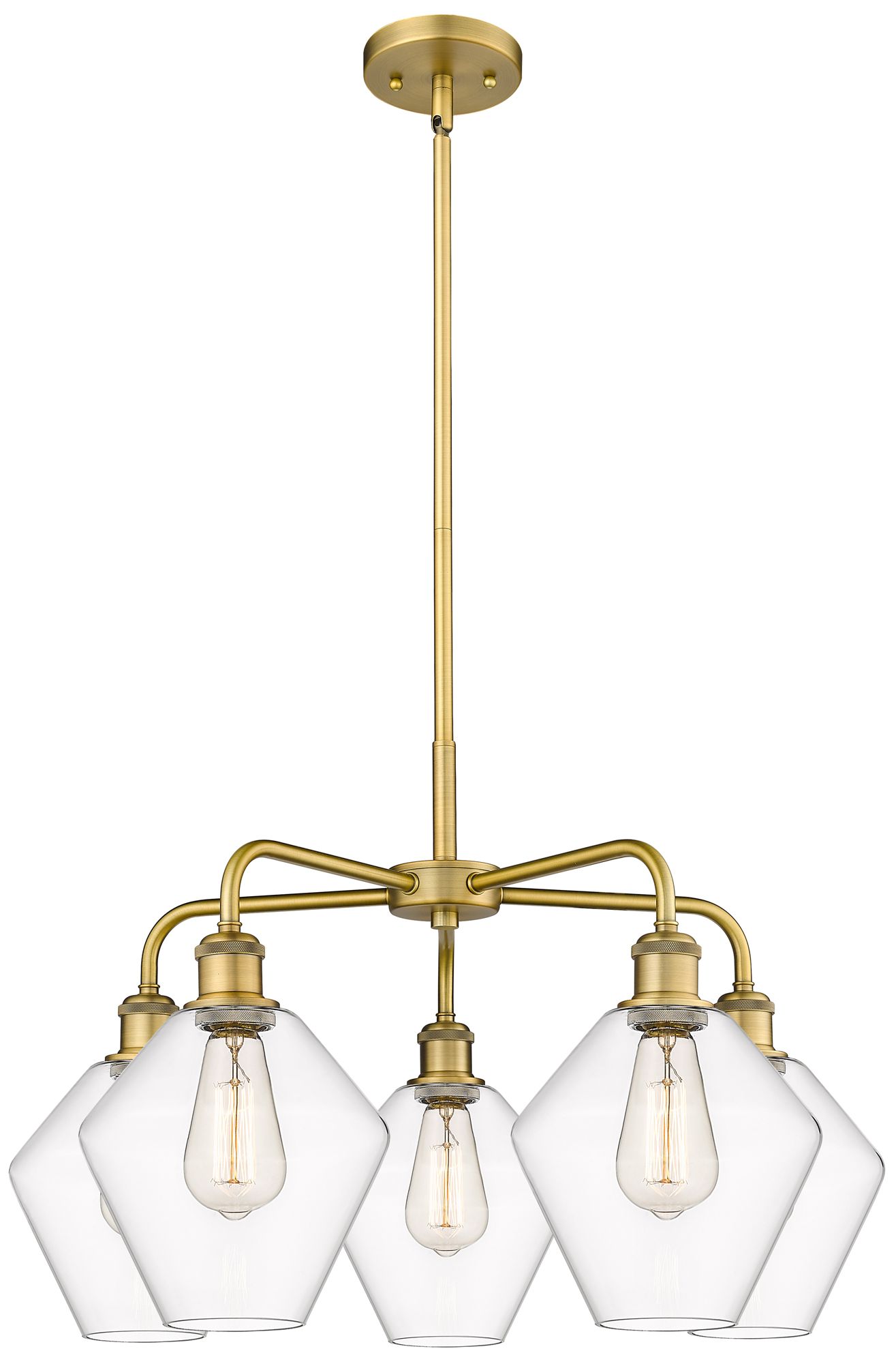 Cindyrella 26"W 5 Light Brushed Brass Stem Hung Chandelier With Clear