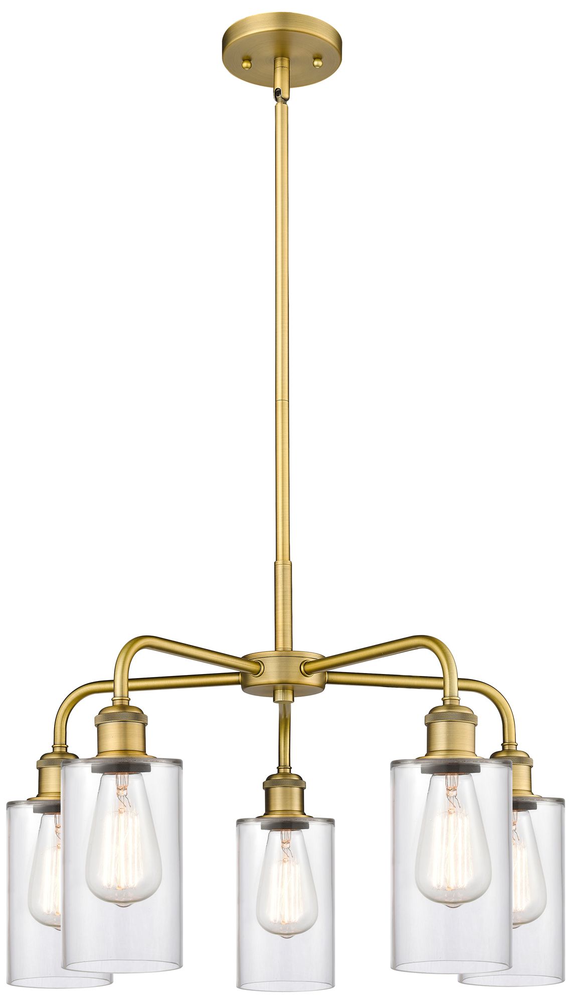 Clymer 21.88"W 5 Light Brushed Brass Stem Hung Chandelier With Clear S