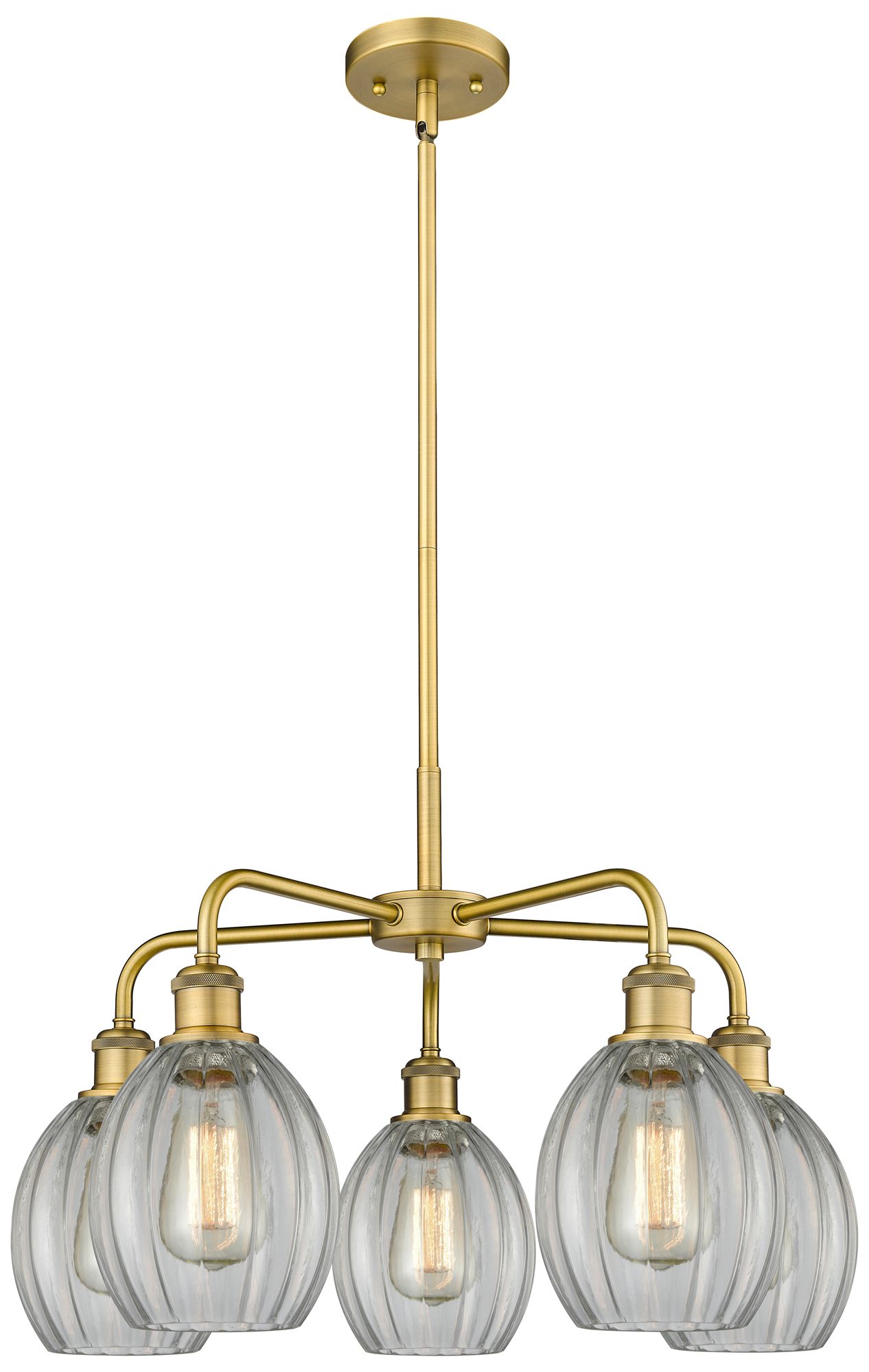 Eaton 23.5"W 5 Light Brushed Brass Stem Hung Chandelier With Clear Sha
