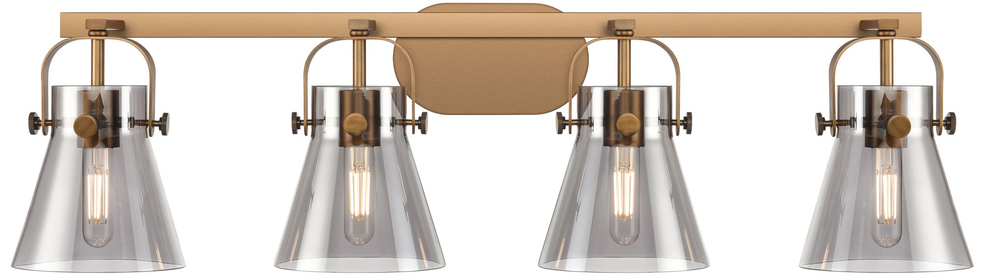 Pilaster II Cone 36.5" Wide 4 Light Brushed Brass Bath Light w/ Smoke