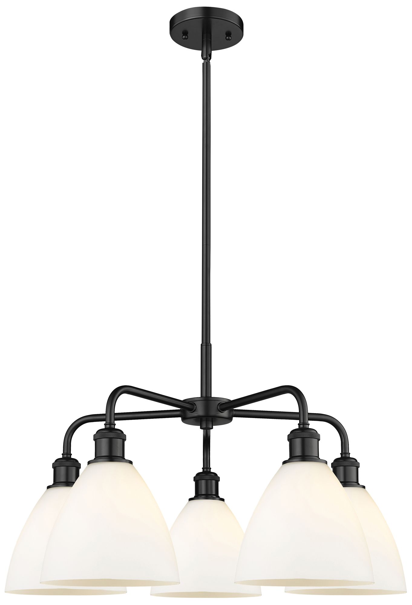 Bristol Glass 25.5"W 5 Light Matte Black Stem Chandelier w/ White Shad