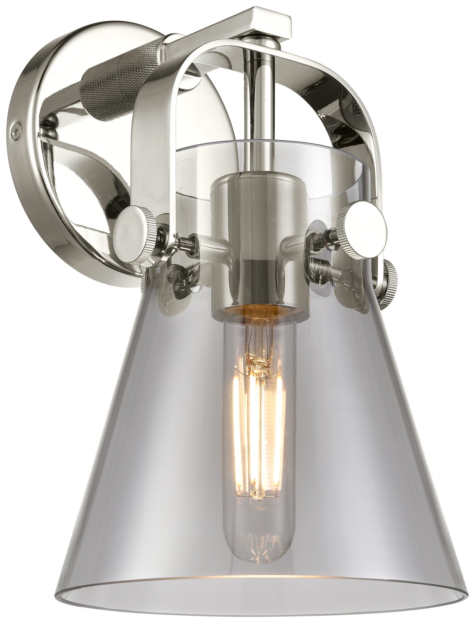 Pilaster II Cone 9.75" High Polished Nickel Sconce With Plated Smoke S