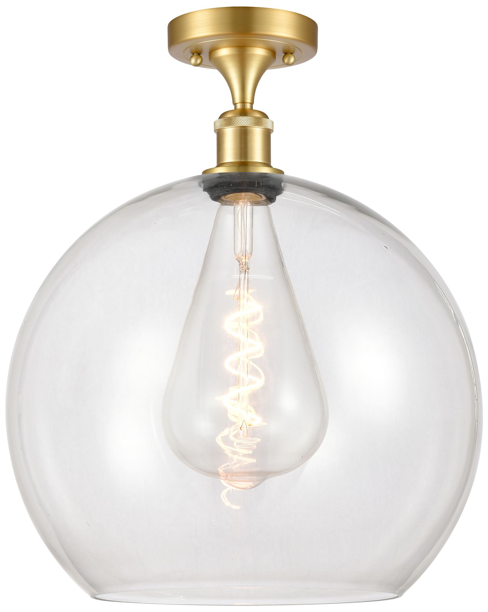 Athens 14" Semi-Flush Mount - Satin Gold - Clear Shade