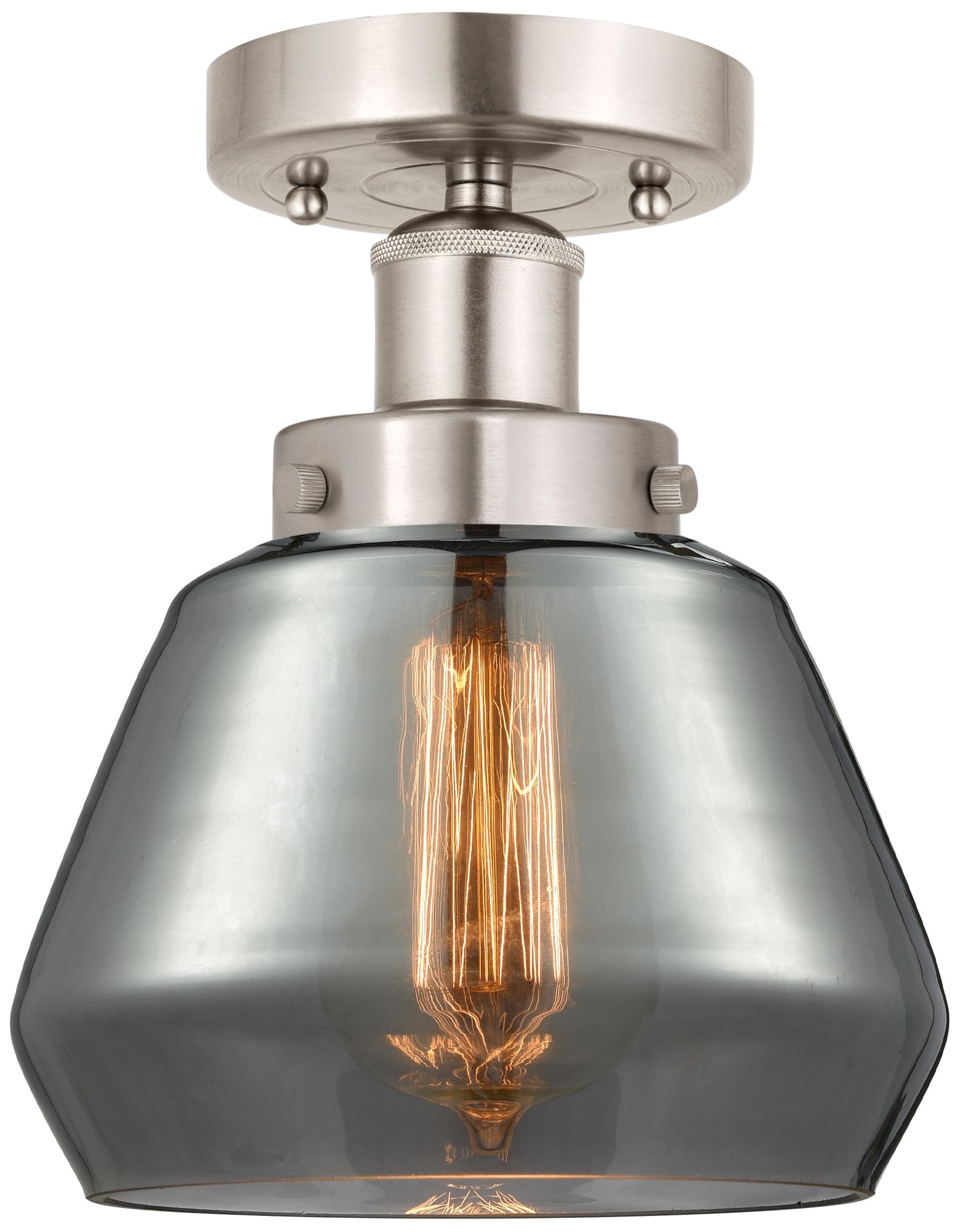 Edison Fulton 7" Brushed Satin Nickel Semi Flush Mount w/ Smoke Shade