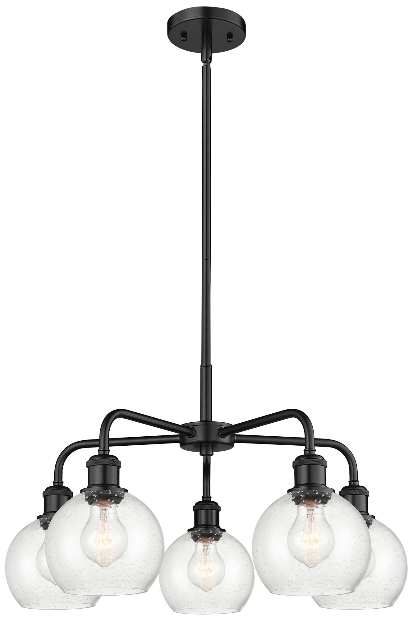 Athens 24" Wide 5 Light Matte Black Stem Hung Chandelier With Seedy Sh