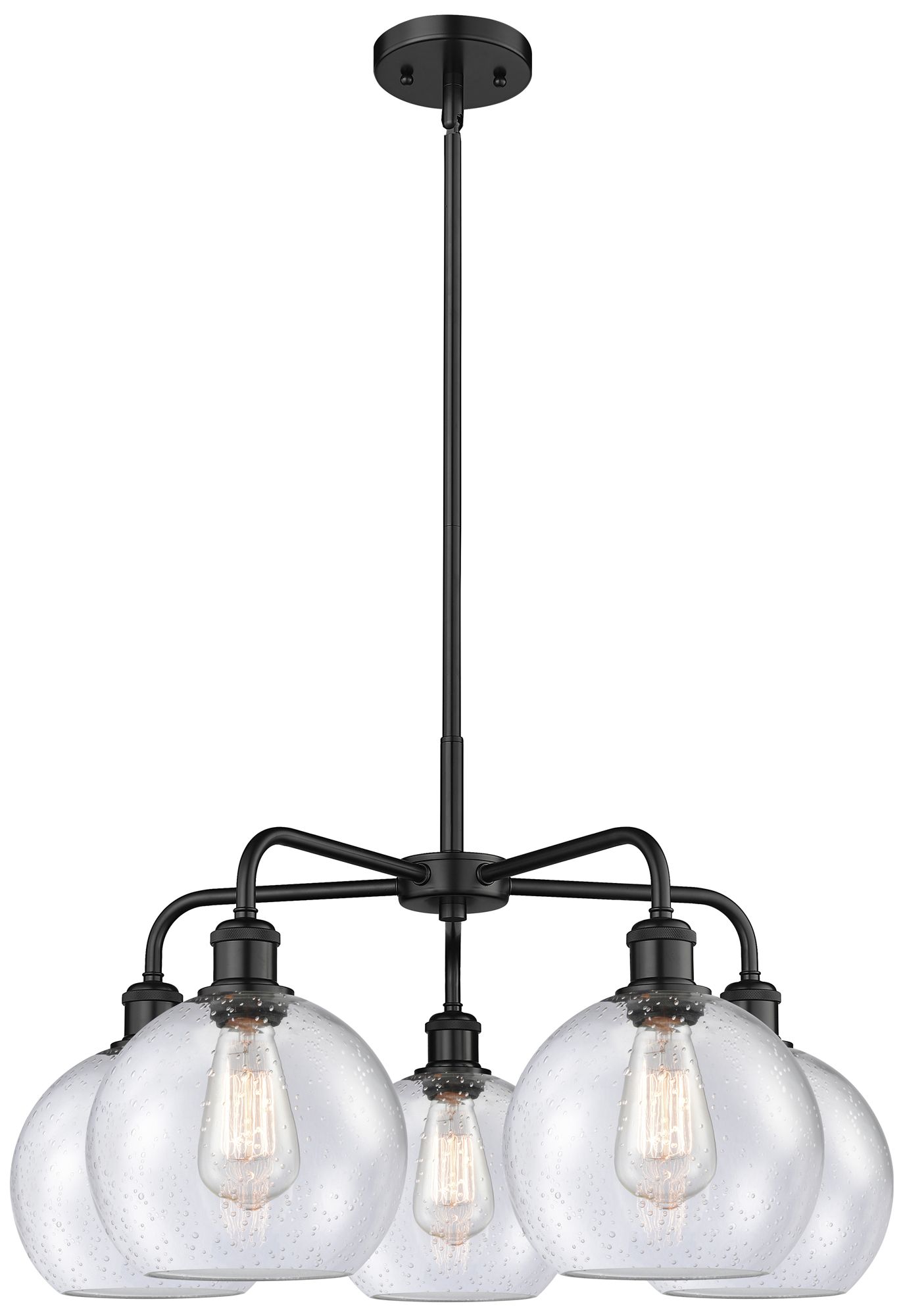 Athens 26" Wide 5 Light Matte Black Stem Hung Chandelier With Seedy Sh