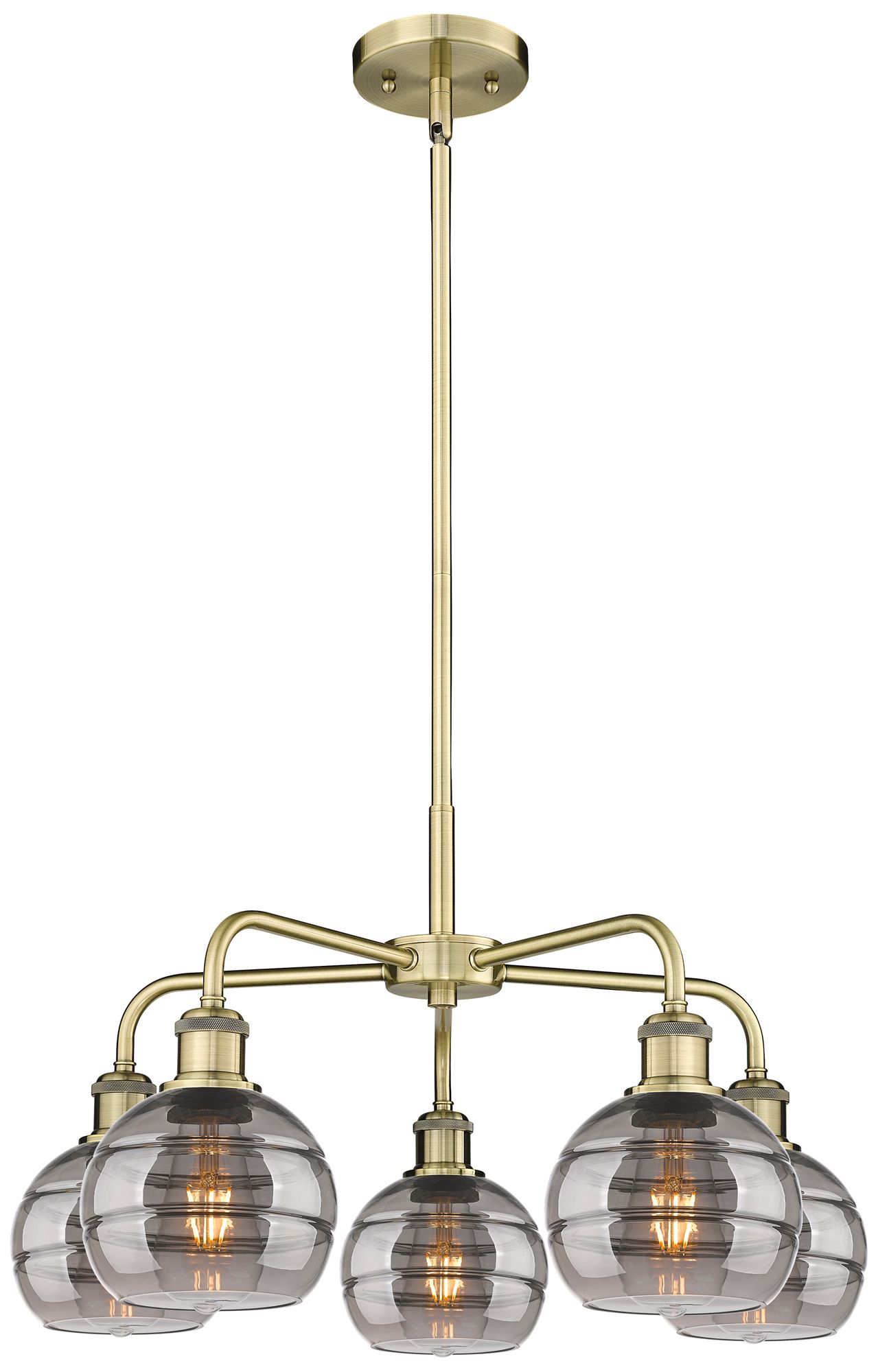 Rochester 23.88"W 5-Light Antique Brass Stem Chandelier w/ Smoke Shade
