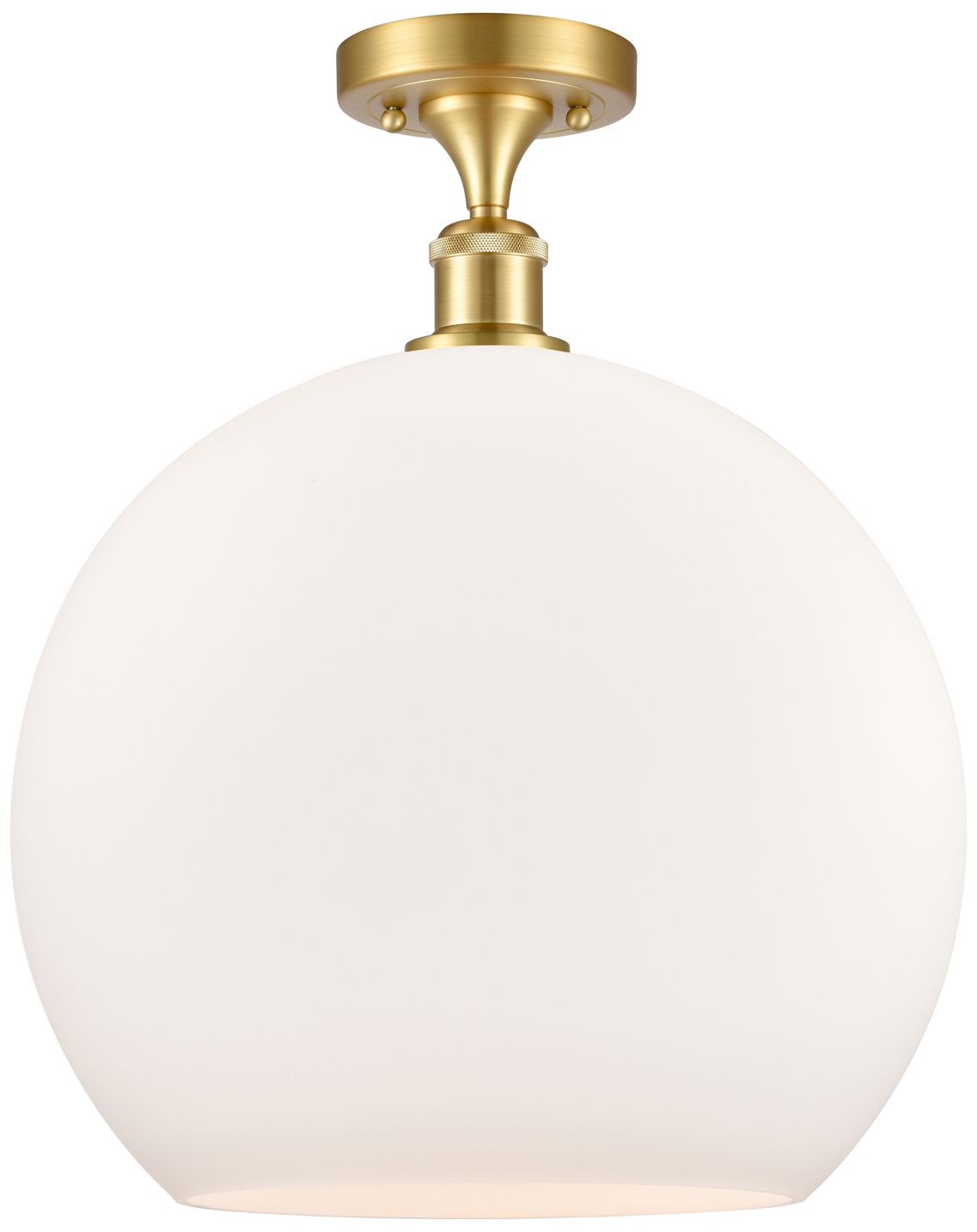 Athens 14" Semi-Flush Mount - Satin Gold - Matte White Shade