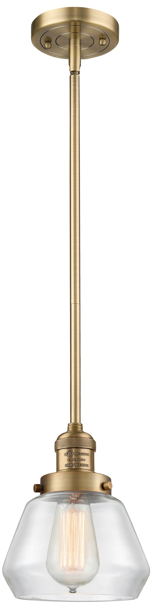 Franklin Fulton 7" Wide Brushed Brass Stem Hung Mini Pendant w/ Clear