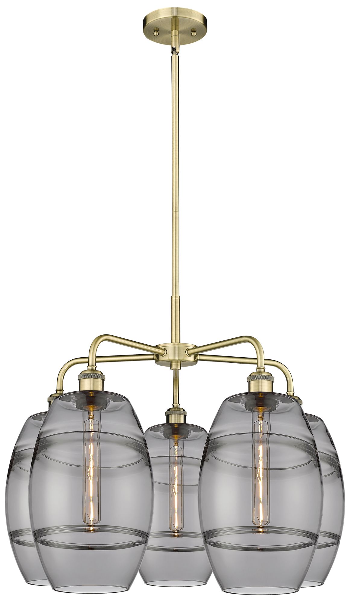Ballston Vaz 26"W 5-Light Antique Brass Stem Chandelier w/ Smoke Shade