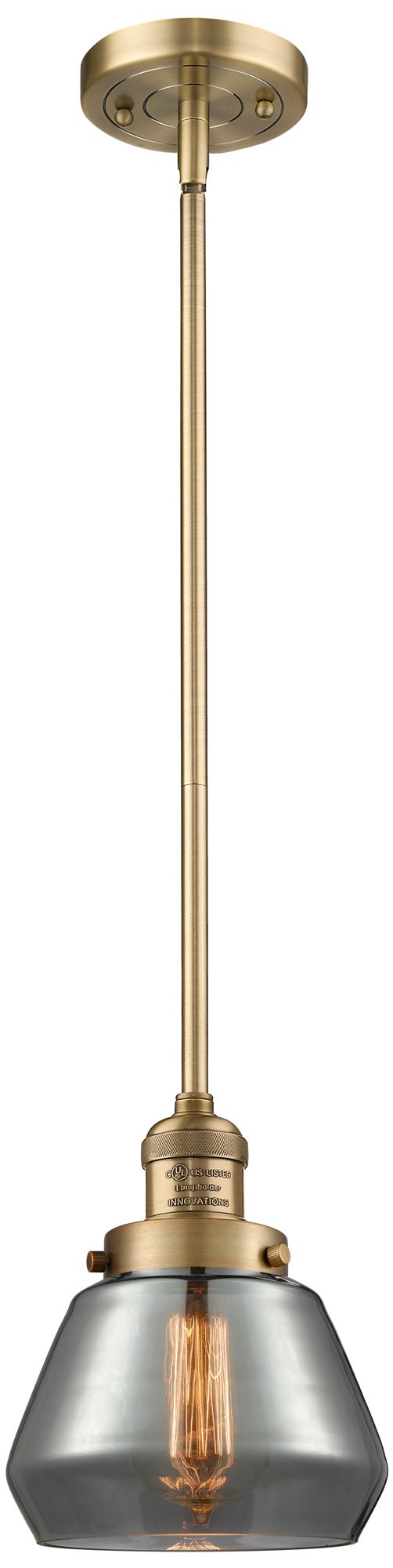 Franklin Fulton 7"W Brushed Brass Stem Hung Mini Pendant w/ Smoke Shad