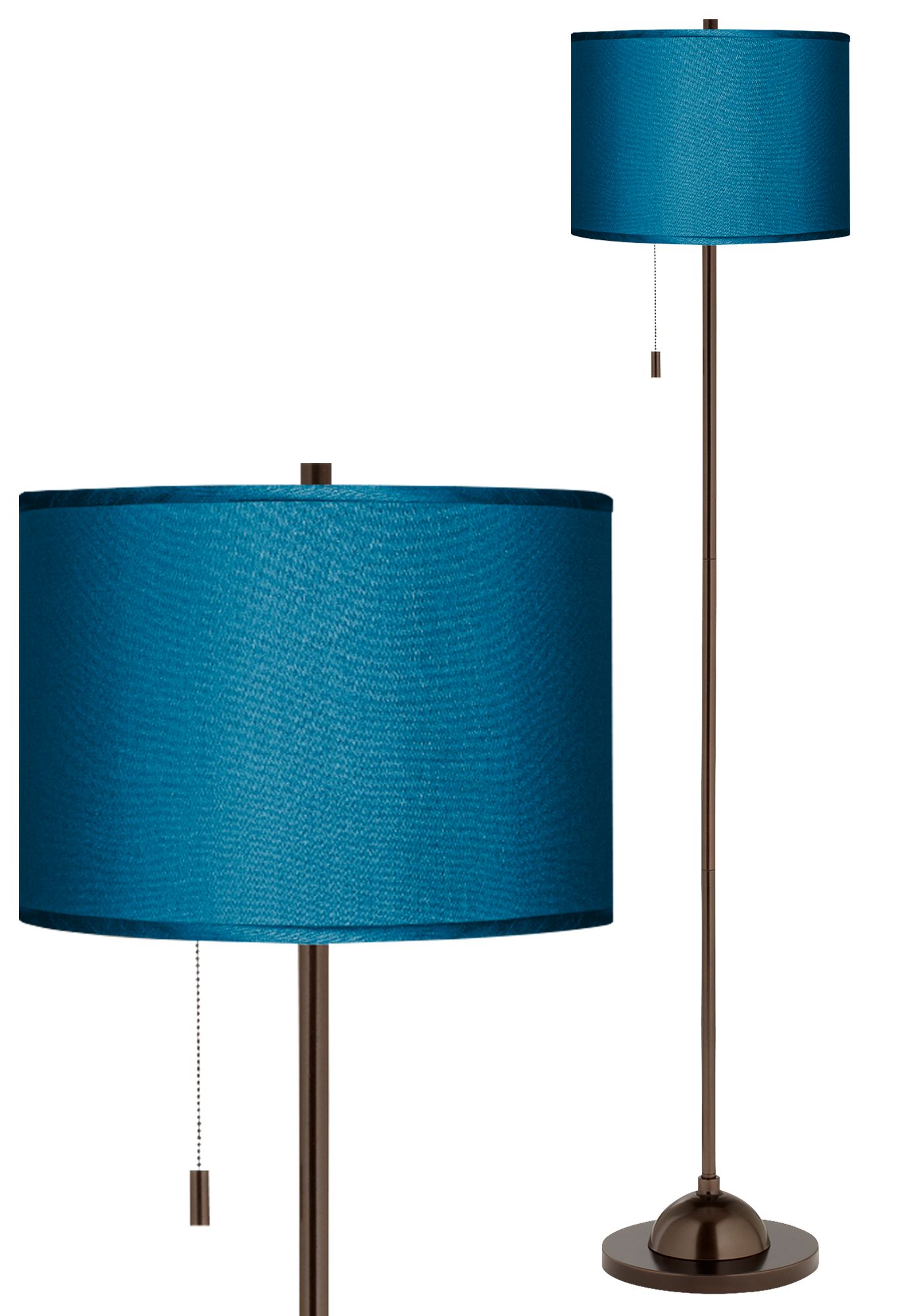 Possini Euro 62" Blue Faux Silk Shade Bronze Club Floor Lamp