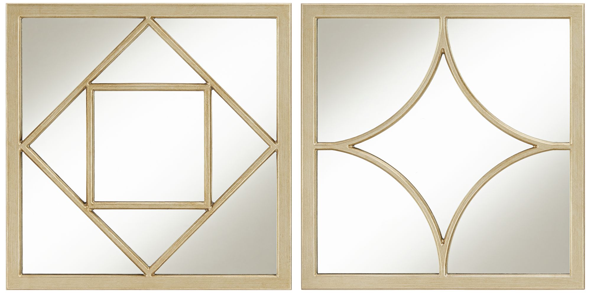 Antique Champagne 18" Square Geometric Mirrors Set of 2