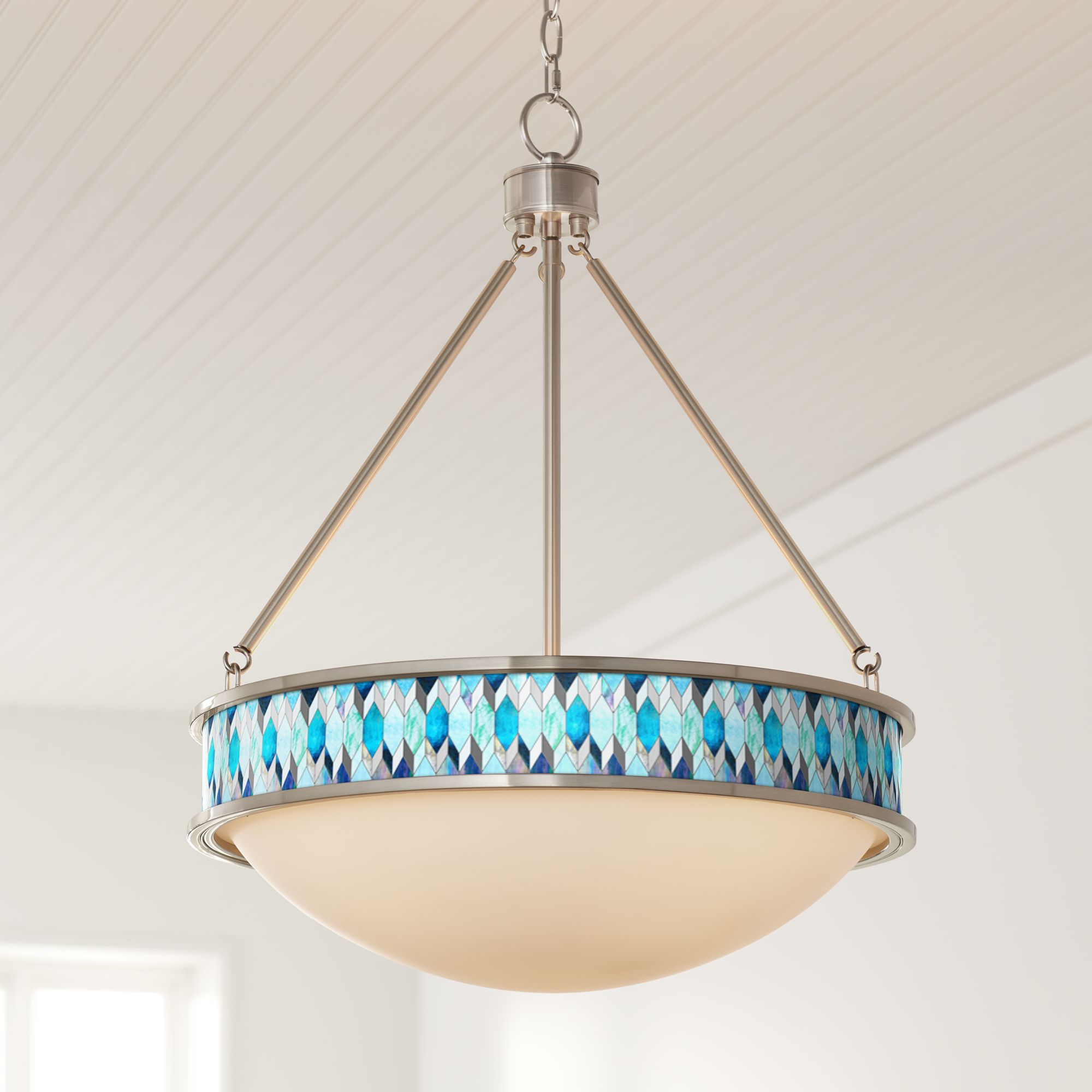 Blue Tiffany-Style 20 1/2" Wide Brushed Nickel Pendant Light