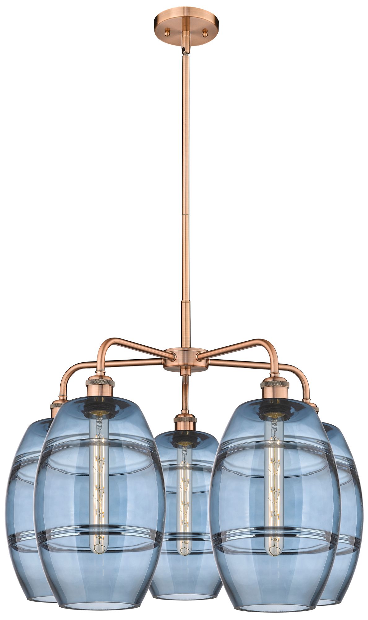 Ballston Vaz 26"W 5-Light Antique Copper Stem Chandelier w/ Blue Shade