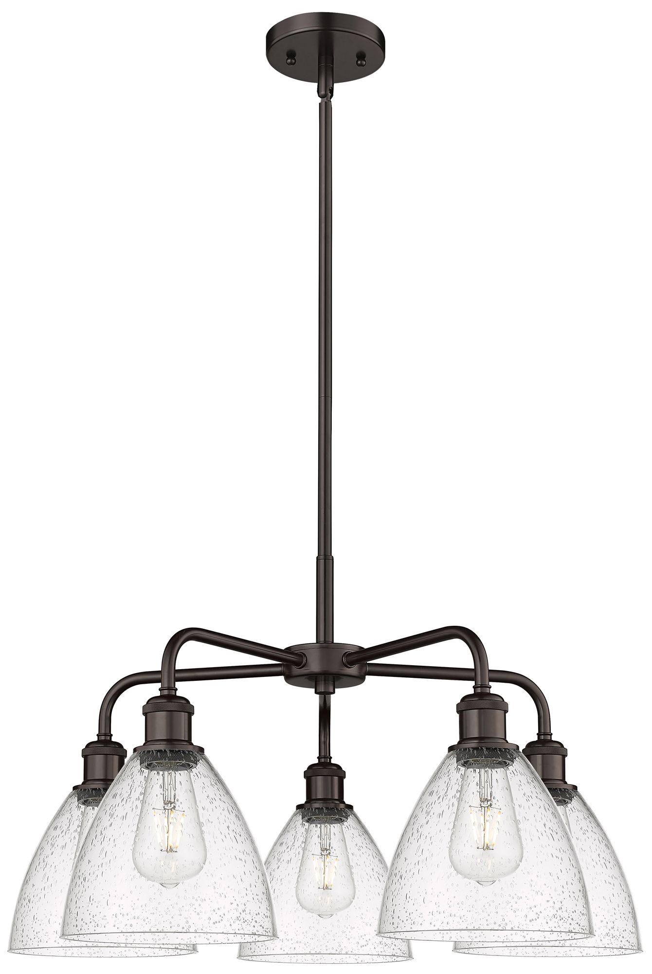 Bristol Glass 25.5"W 5 Light Rubbed Bronze Stem Chandelier w/ Seedy Sh