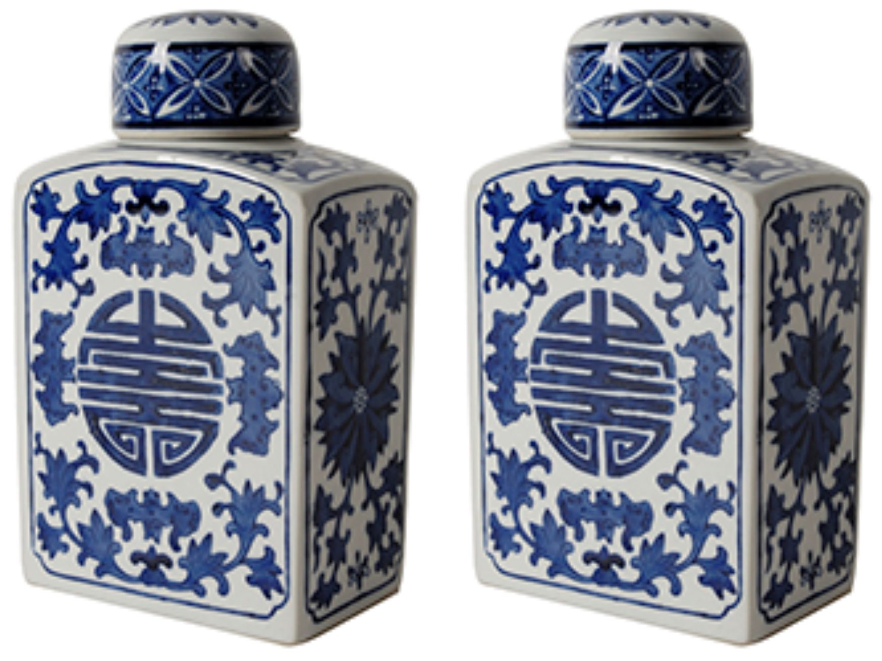 Ren 8.5" Tall Rectangular Blue & White Lidded Jar - Set of 2
