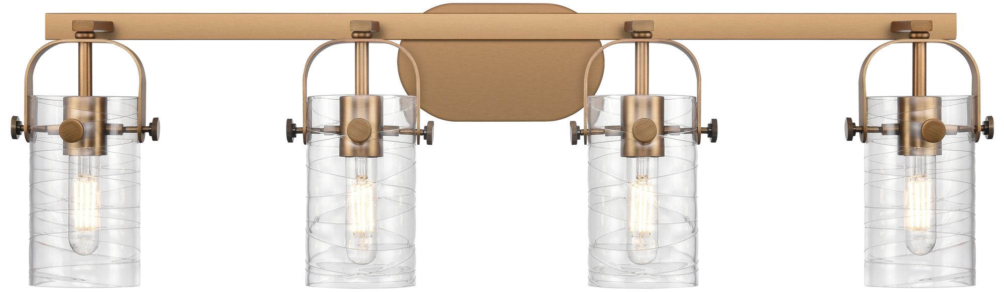 Pilaster II Cylinder 35"W 4 Light Brushed Brass Bath Light w/ Swirl Sh