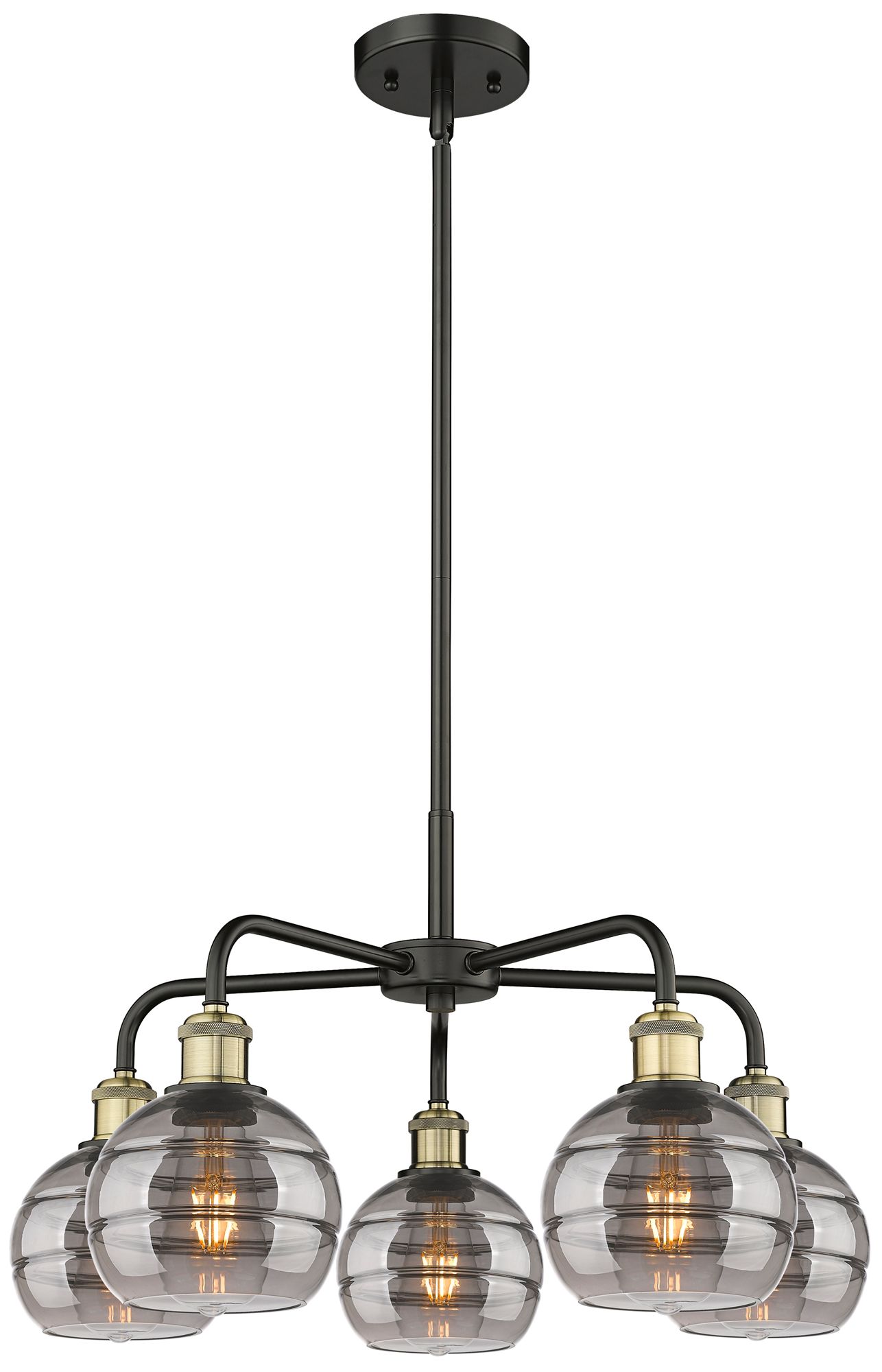 Rochester 23.88"W 5-Light Black Brass Stem Chandelier w/ Smoke Shade