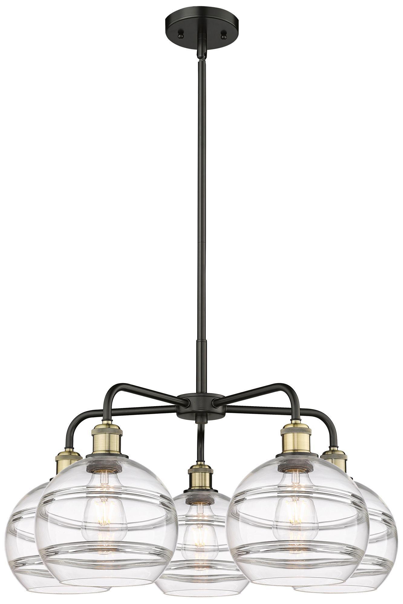 Ballston Rochester 26"W 5-Light Black Brass Stem Chandelier w/ Clear S