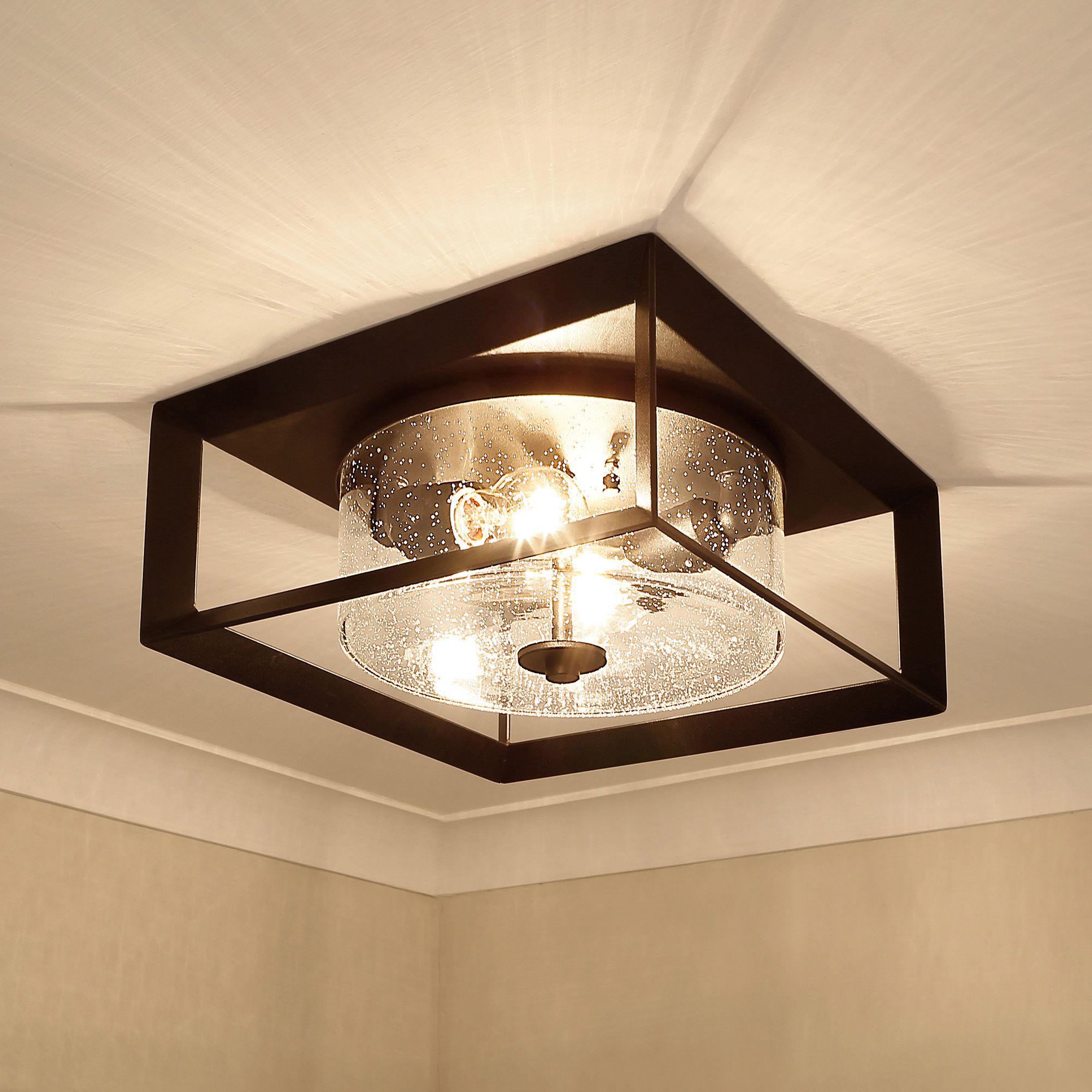 Golden Lighting Smyth Black 13 1/4" Seeded Glass Porch Ceiling Light