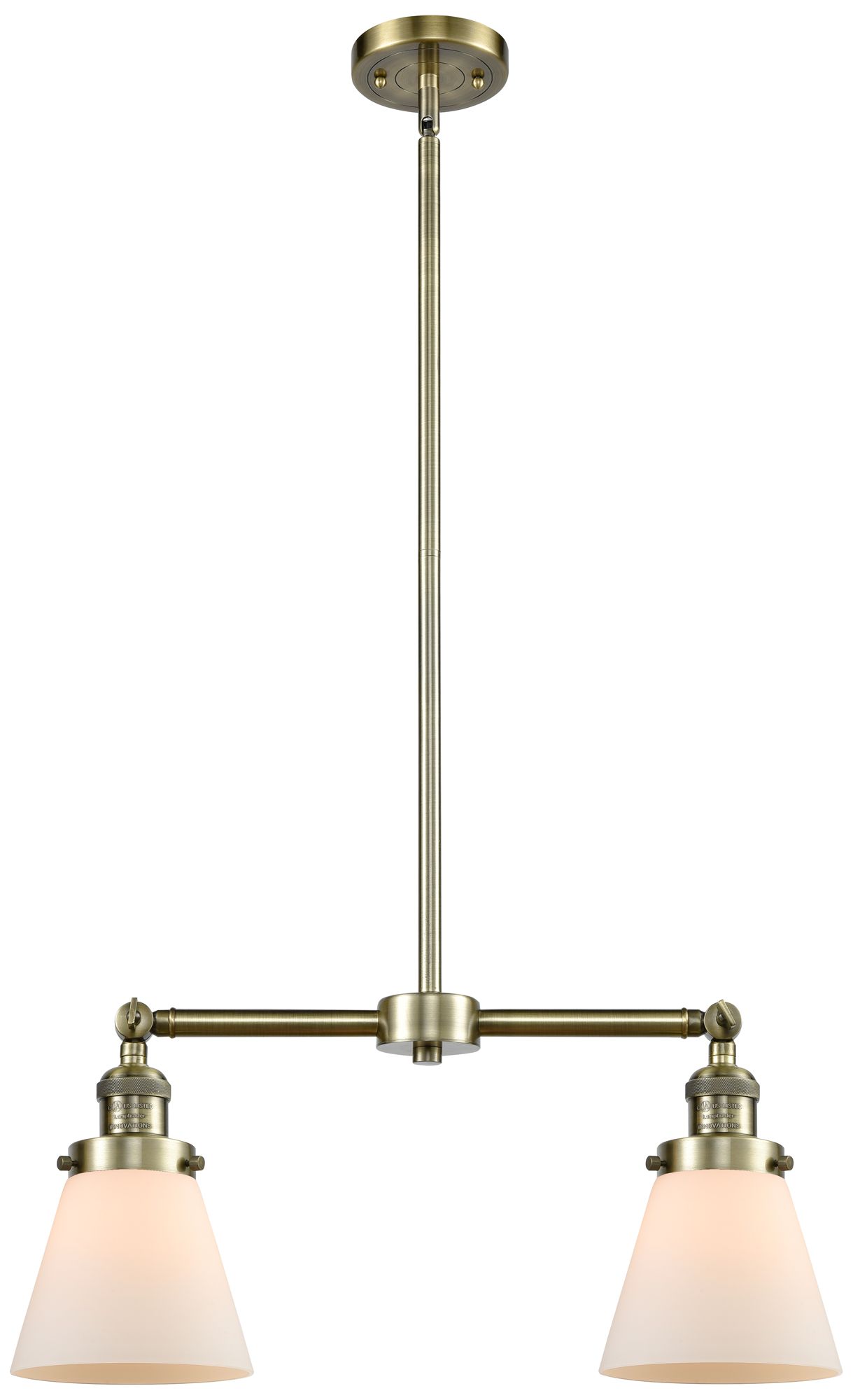 Cone 21" Wide 2 Light Antique Brass Island Light w/ Matte White Shade