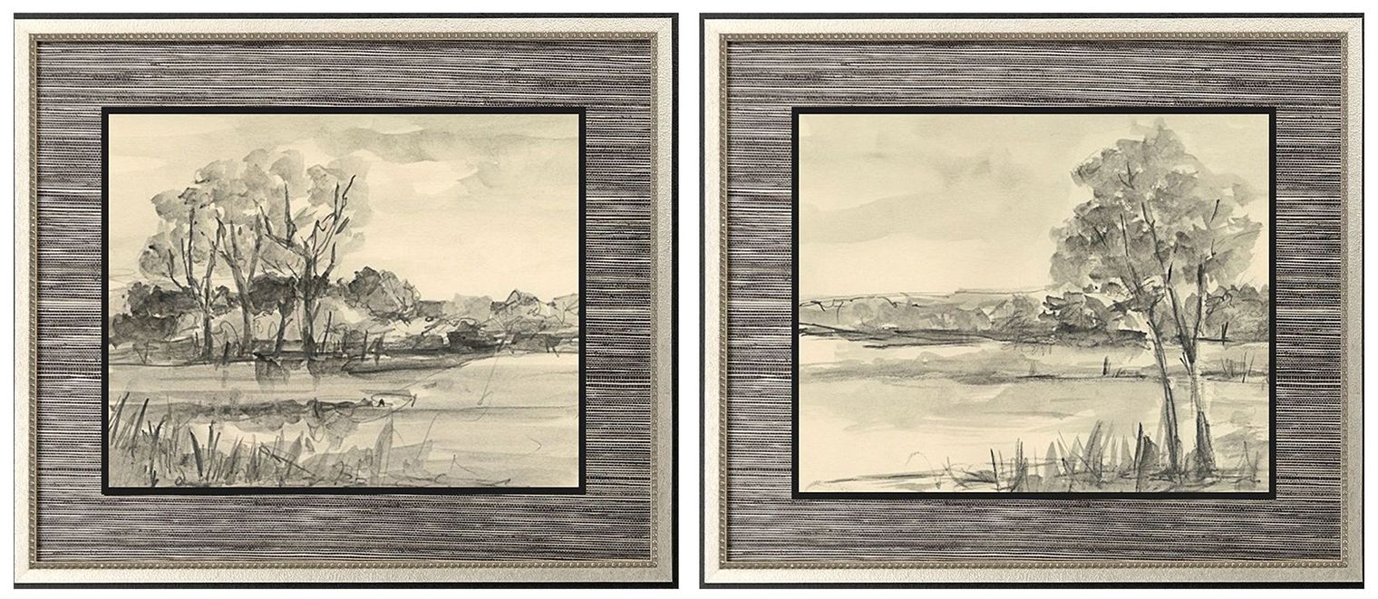 Graphite Plein Air 28"W x 24"H Framed Art Set of 2