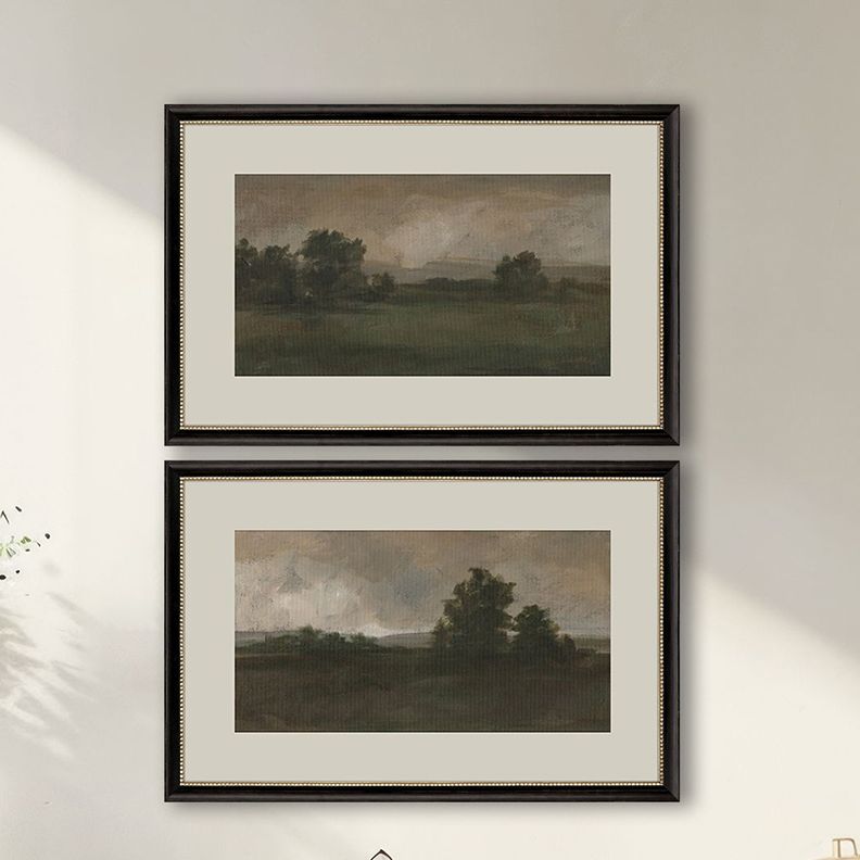 Dusk Panoramic Vista 34"W x 22"H Framed Art Set of 2