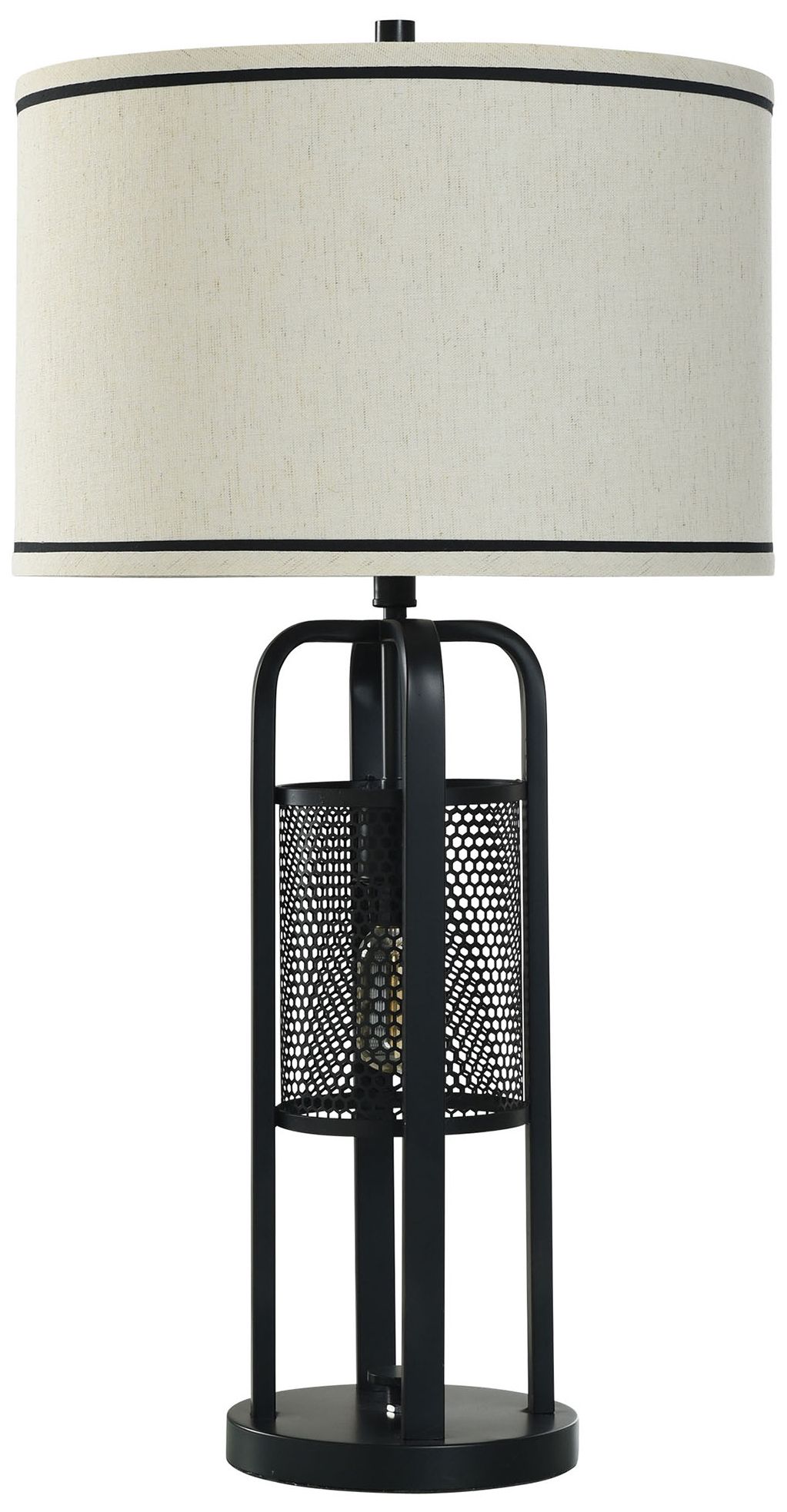 StyleCraft 33"H Satin Black Steel Table Lamp w/ Oatmeal And Black Shad