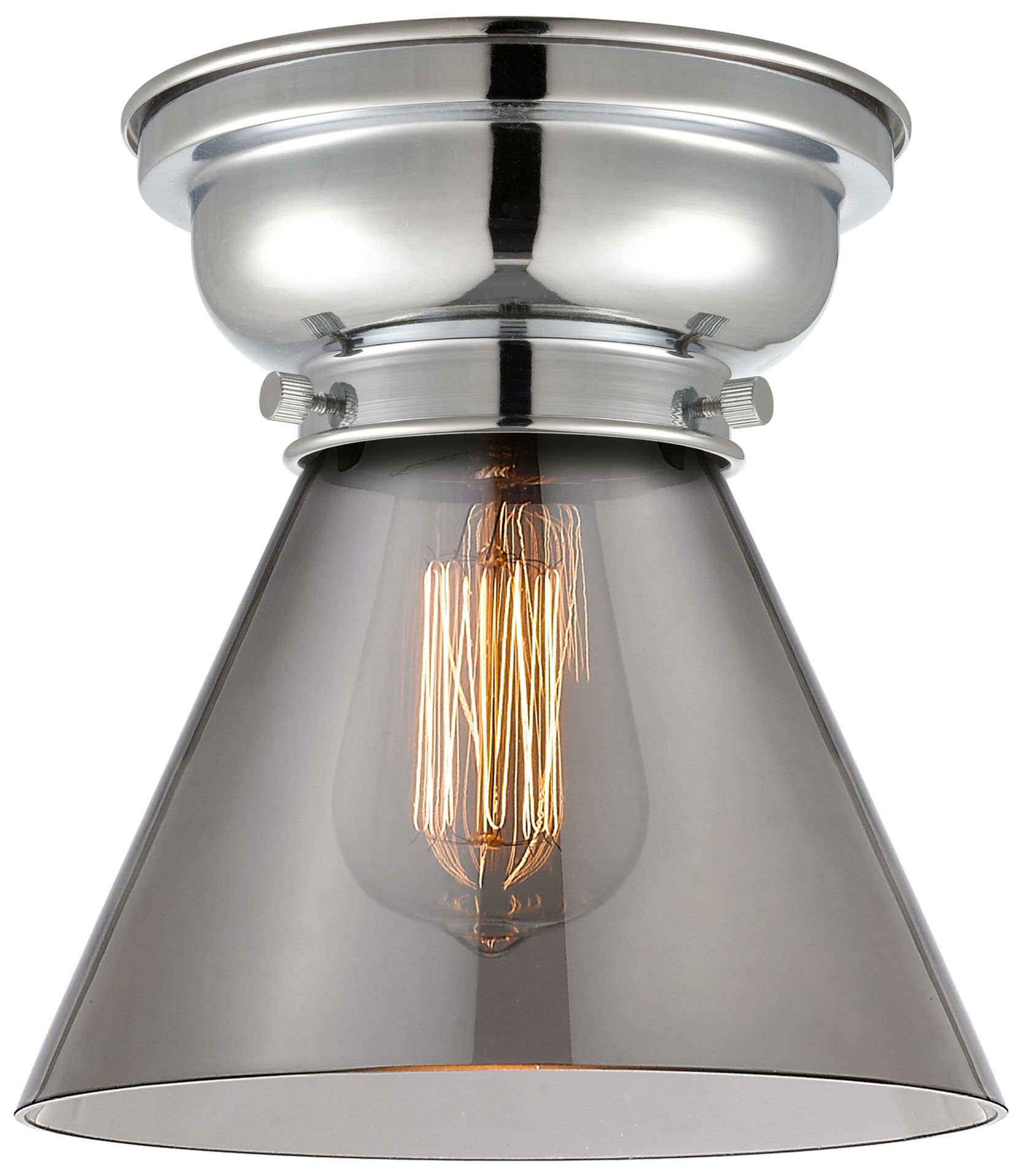 Aditi Cone 8" Polished Chrome Flush Mount w/ Plated Smoke Shade