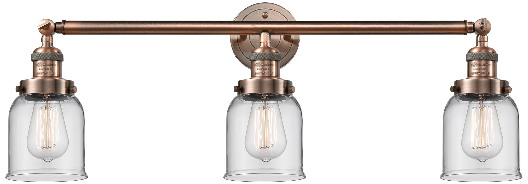 Bell 3 Light 30" LED Bath Light - Antique Copper - Clear Shade