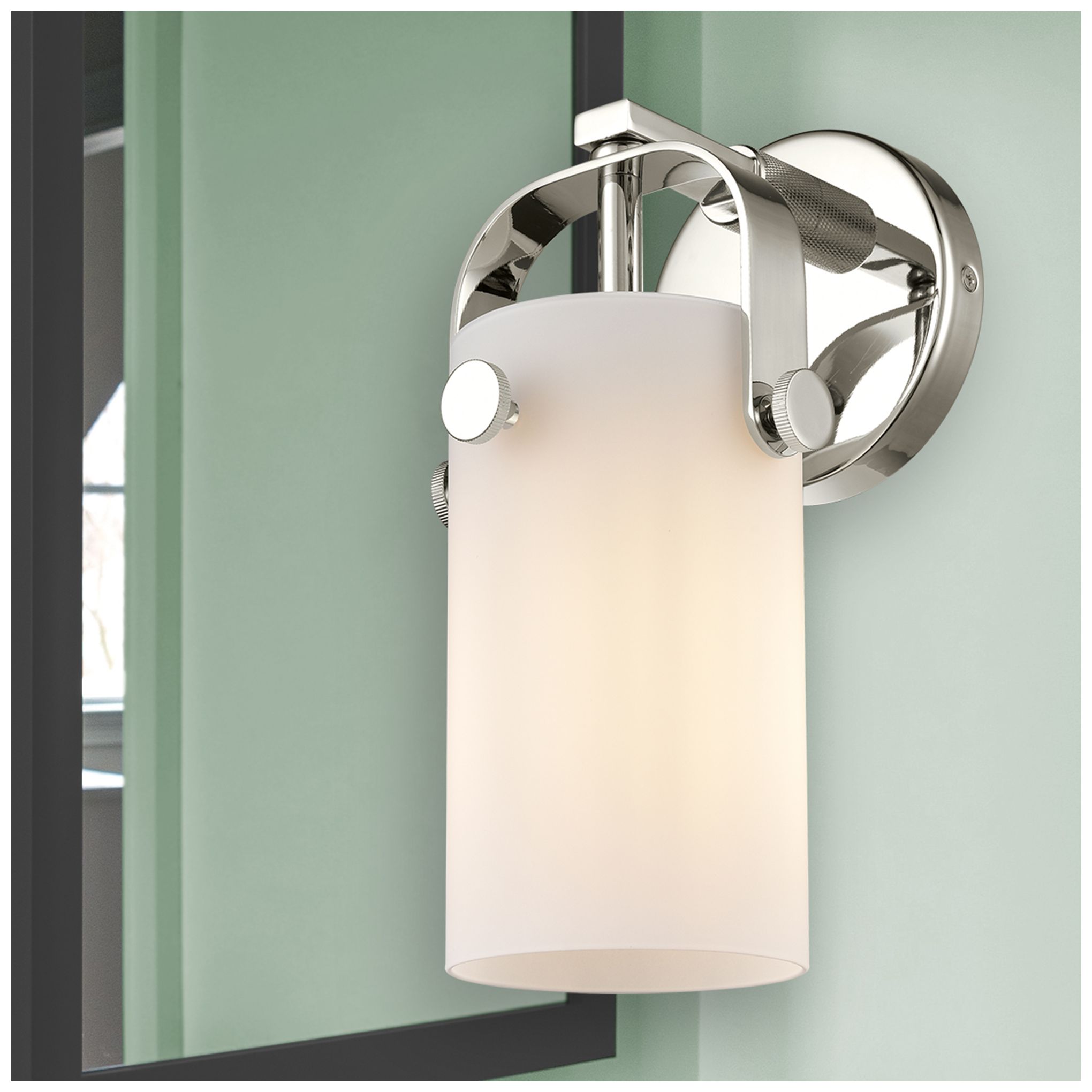 Pilaster II Cylinder 10.5" High Polished Nickel Sconce w/ Matte White