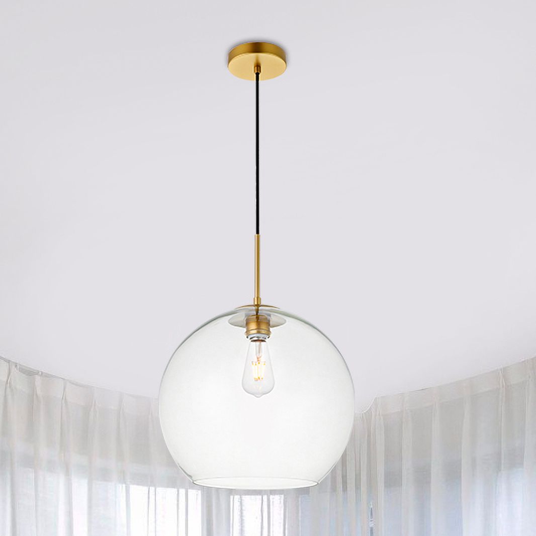 Elegant Lighting Baxter 13 3/4" Modern Brass Clear Glass Dome Pendant