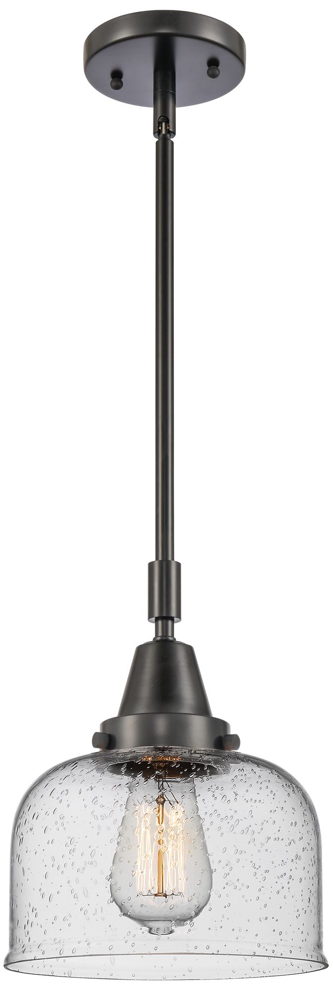 Caden Bell 8" Wide Matte Black Stem Hung Mini Pendant w/ Seedy Shade
