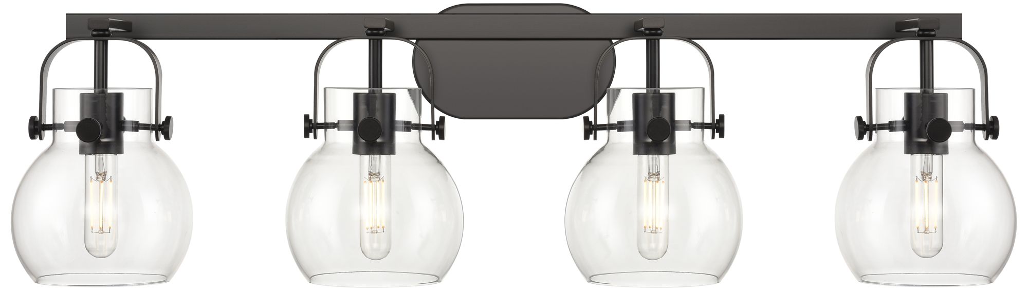 Pilaster II Sphere 36.5" Wide 4 Light Matte Black Bath Light w/ Clear