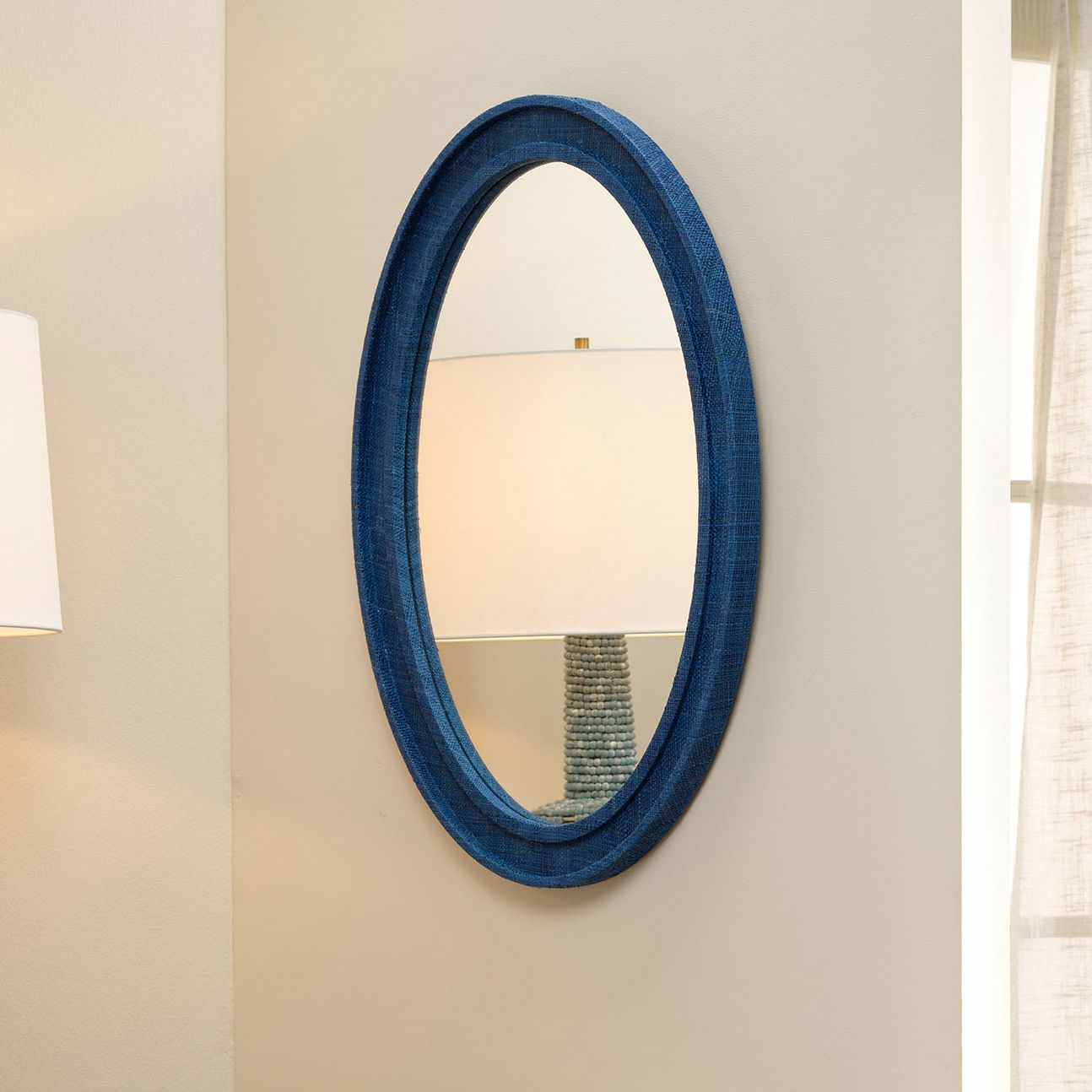 Jamie Young Valley 35" x 26" Oval Wall Mirror in Indigo Raffia